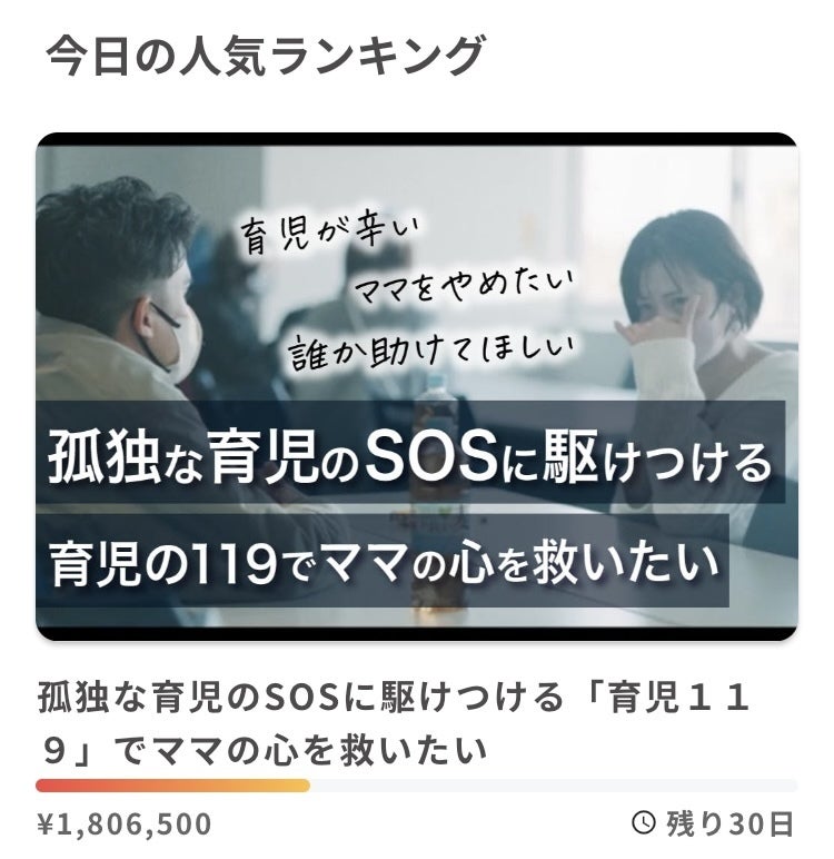 開始初日で、支援者様は230名を超え
