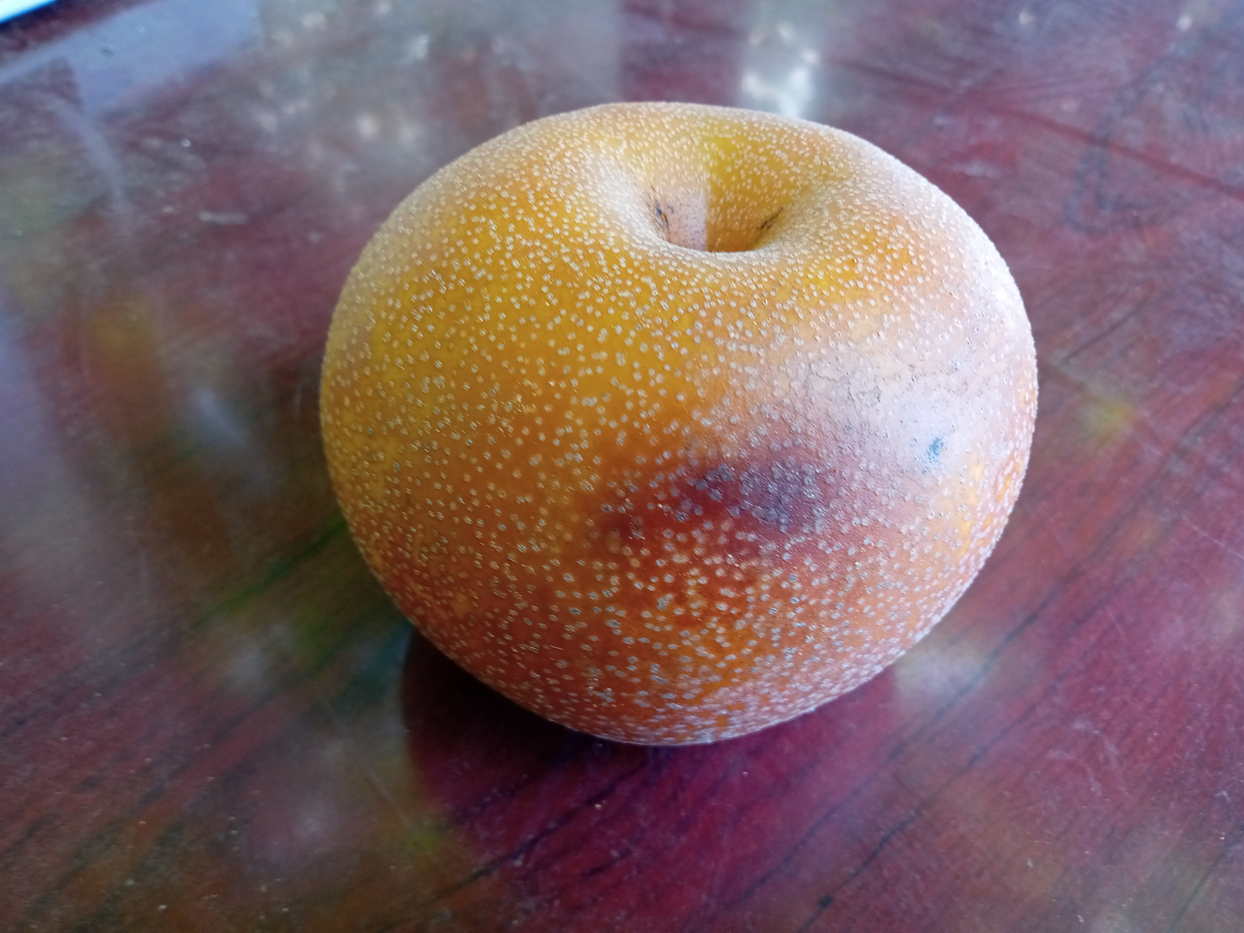 日差しで表面が焼けてしまった梨