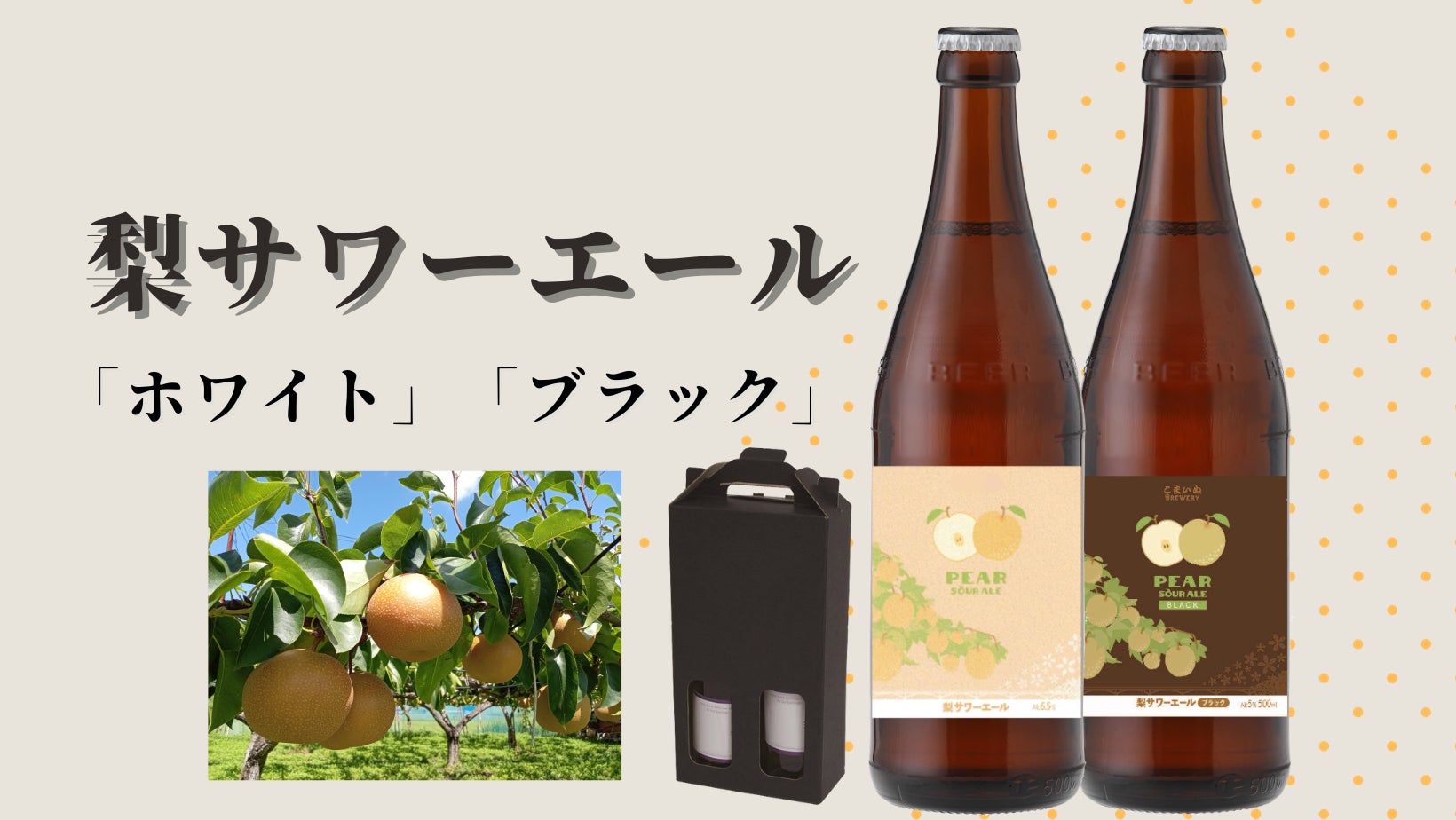 「梨ホワイトエール」「梨ブラックエール」をお届けします。ご購入いただけた分だけ、梨の廃棄がゼロに近づきます。