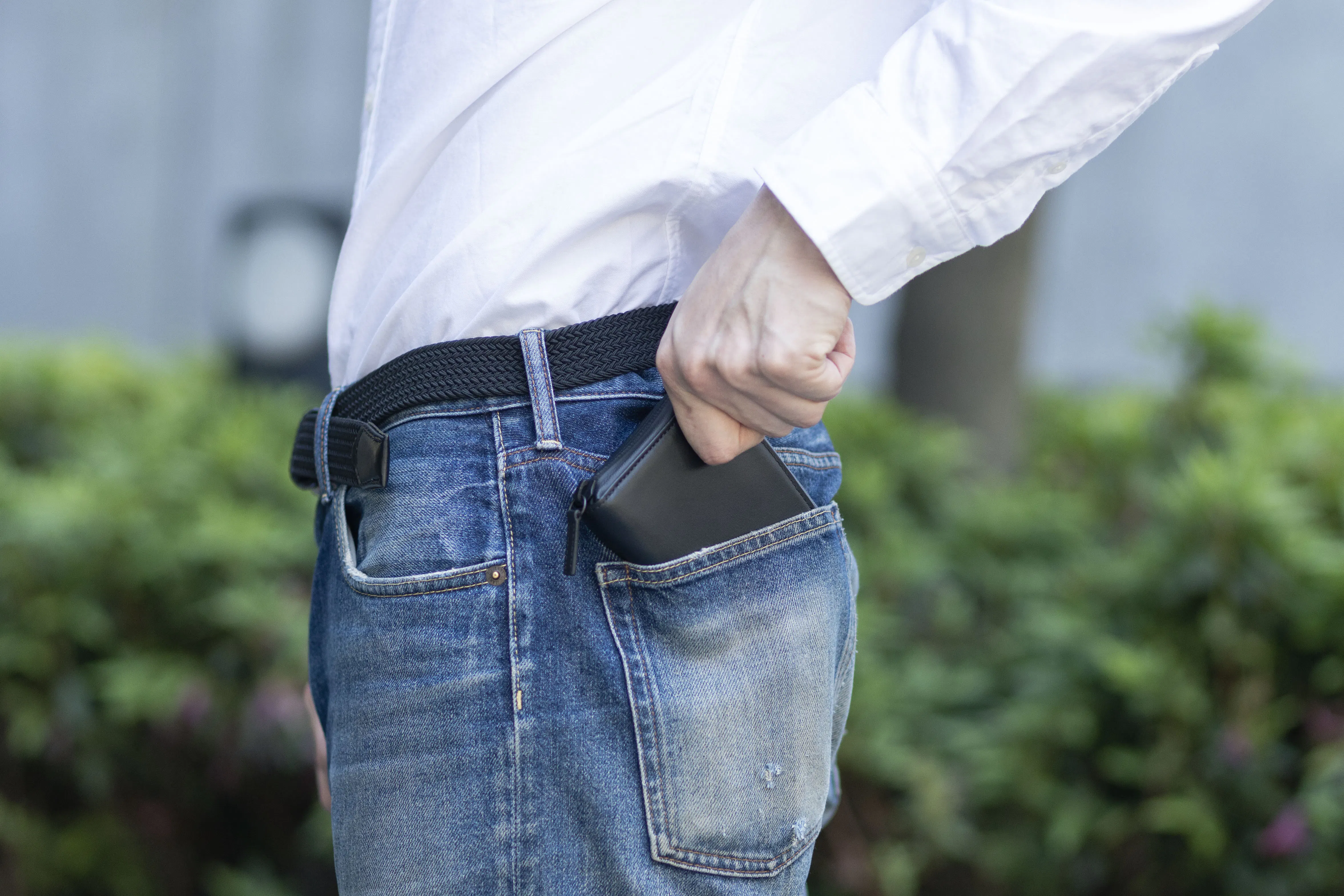 YKK製の止水ファスナー「AquaGuard®NATULON®」を装備しており、スコッチガード™皮革保護剤で加工したレザーが持つ高い撥水性と相まって、内部の水濡れへの対策は万全です。街中やアウトドアで急に雨が降っても、大切な紙幣や貴重品を守ります。