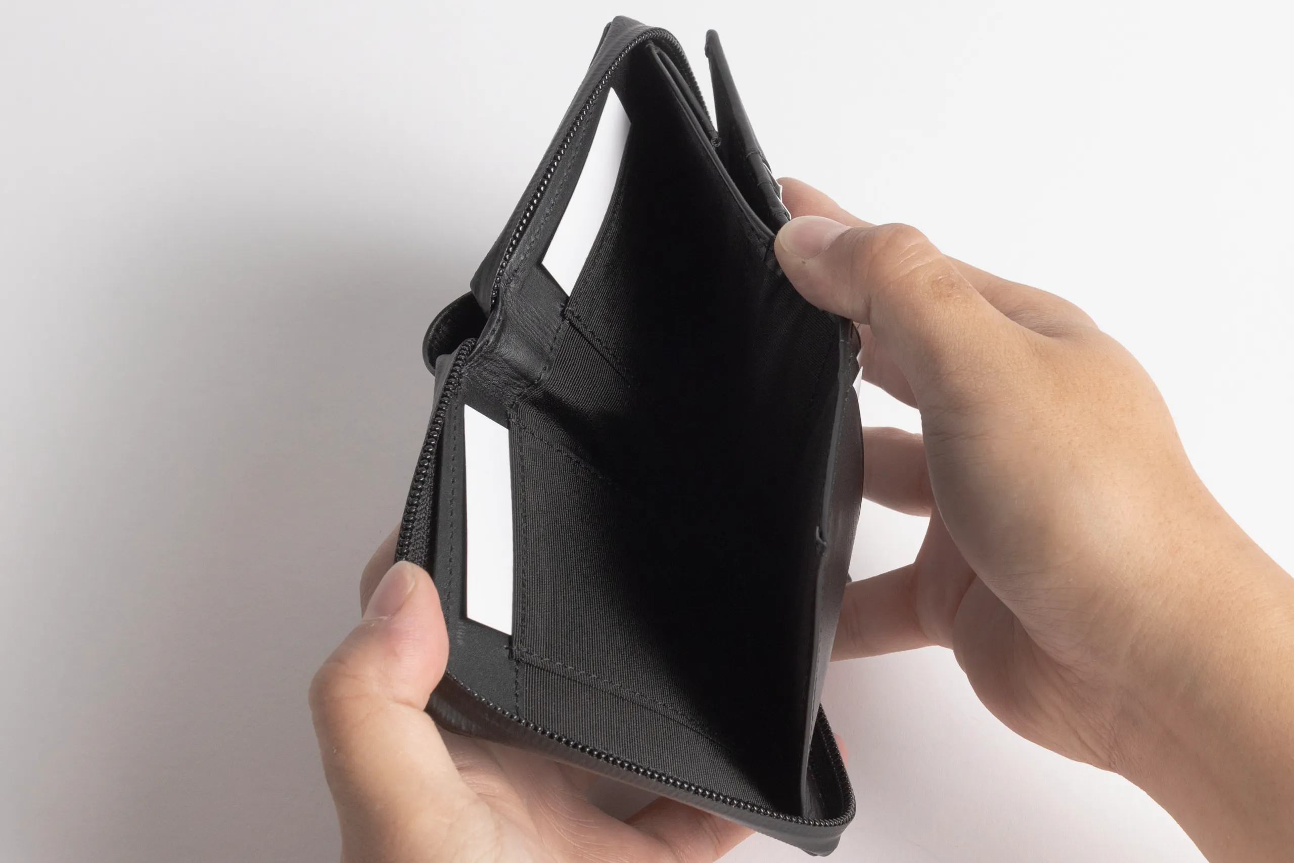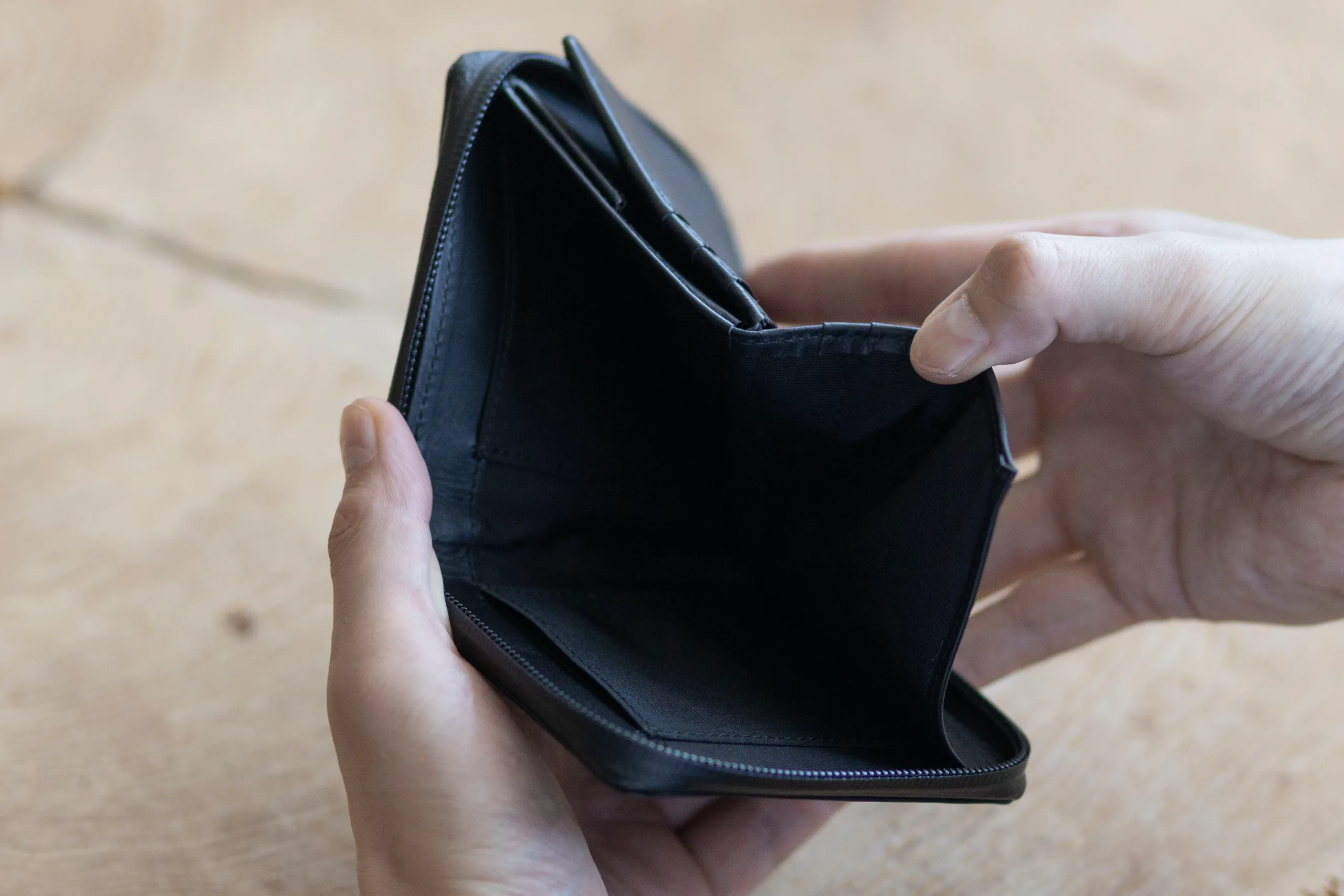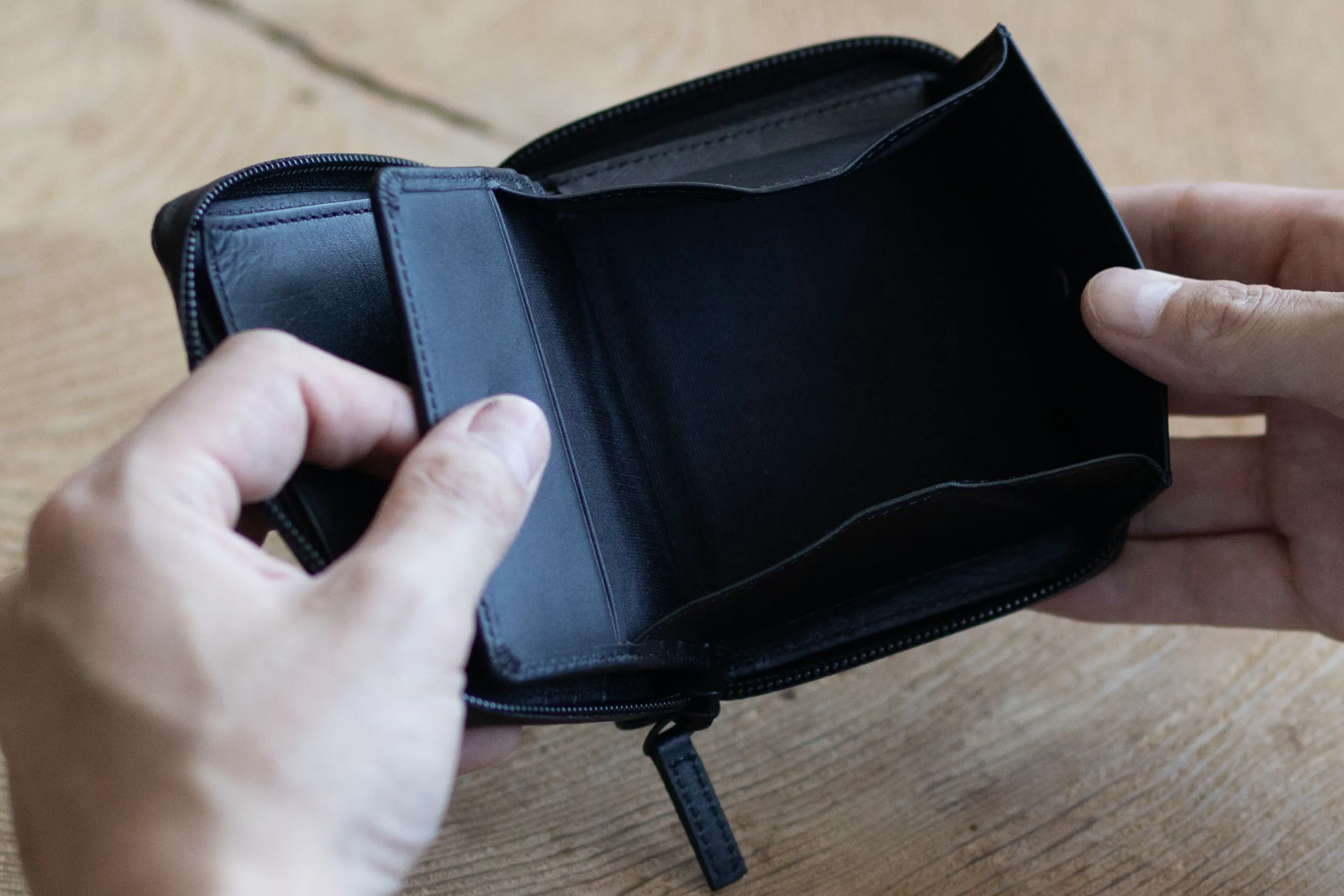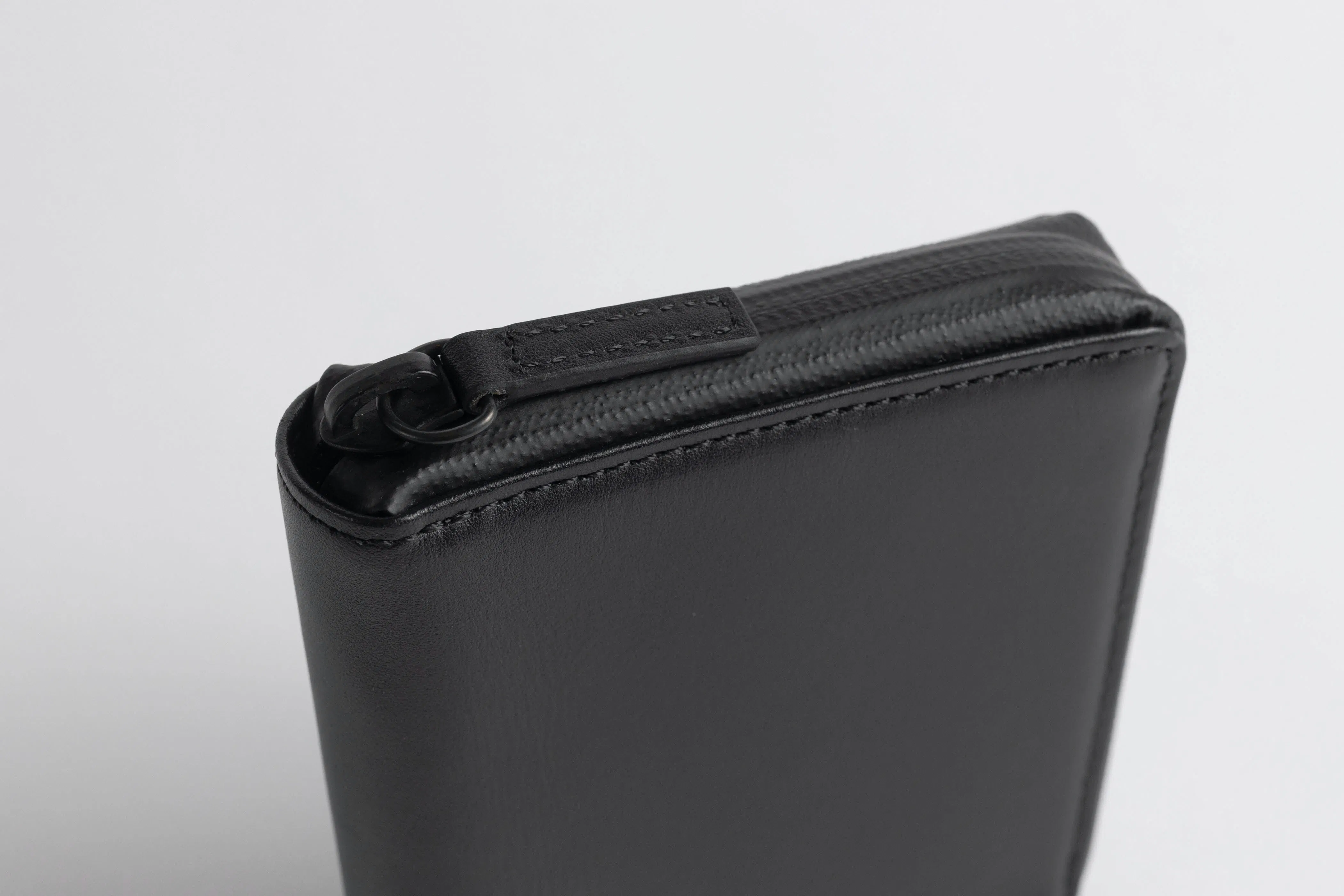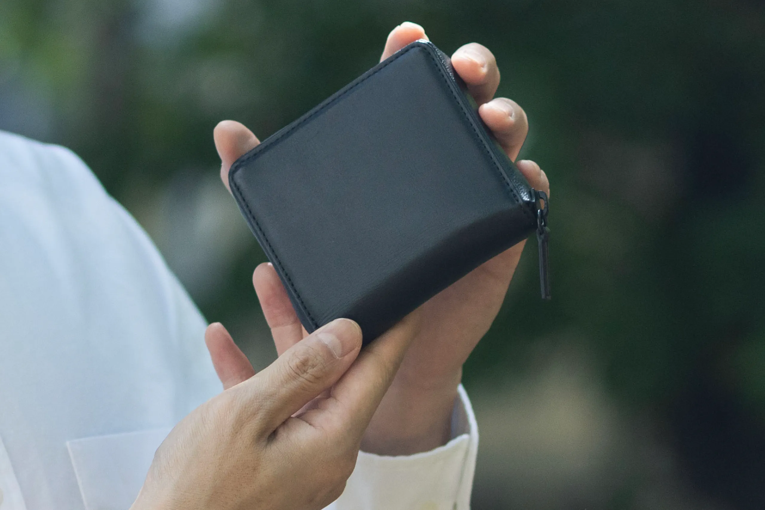 タイプとしてはラウンド財布ですが、止水ファスナーを採用することでサイドからの浸水も抑え、カラーもブラックに統一することでスタイリッシュな仕上がりになっています。
