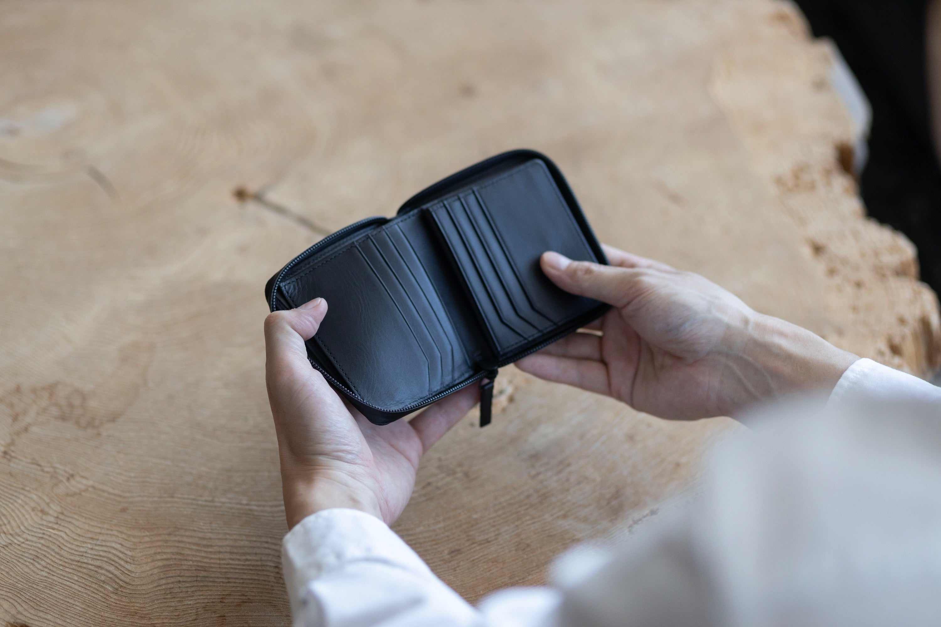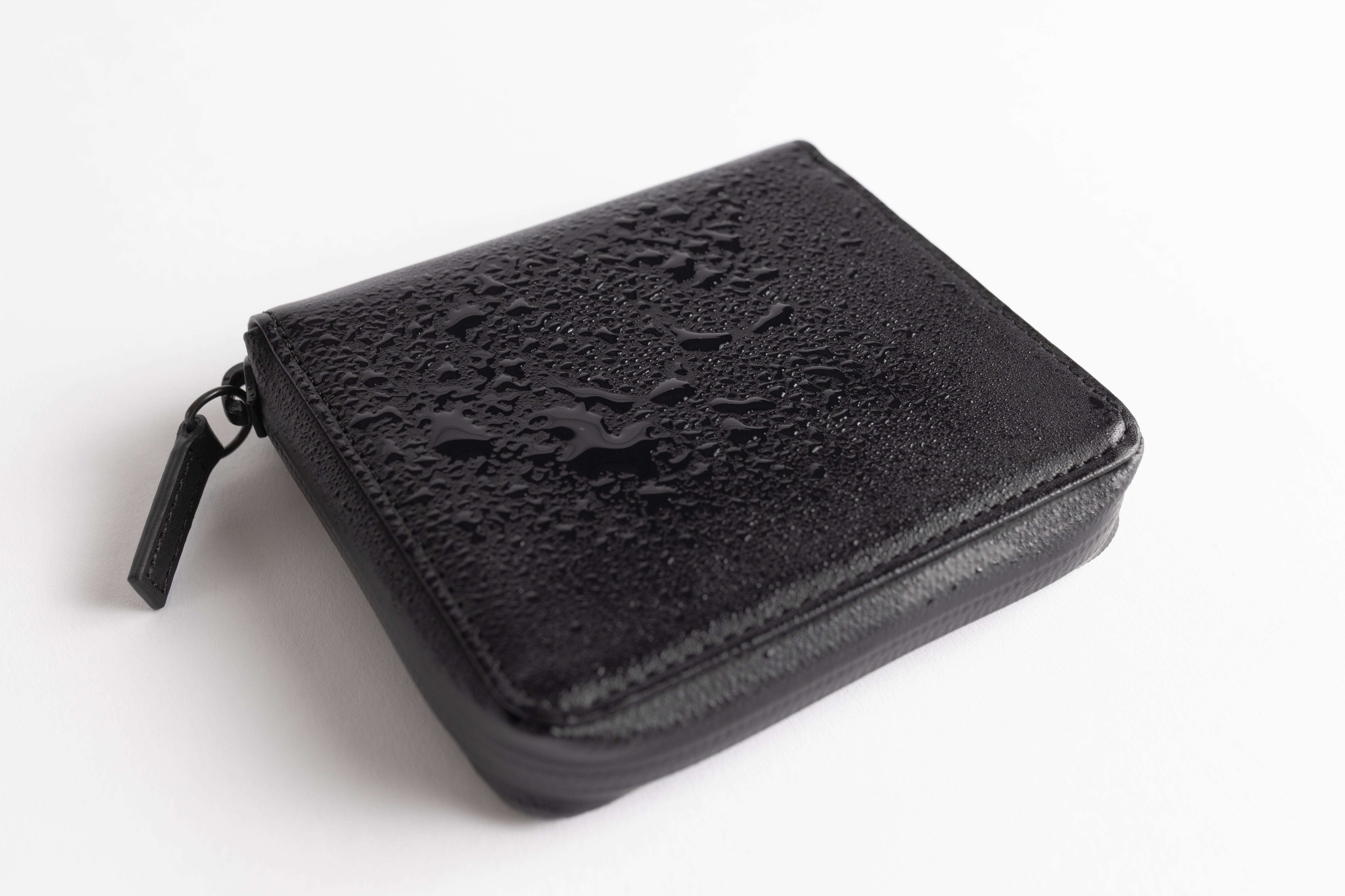 そんな要望を叶えるのが、machi-ya originalsの新作として開発した「撥水ミニマルウォレット」。「スコッチガード™」皮革保護剤によるコーティングを素材に施すことで、高い撥水性を備えたラウンドファスナー財布です。本革製でありながらイージーケアで、新品のように美しいルックスと質感を長期的に保ちます。