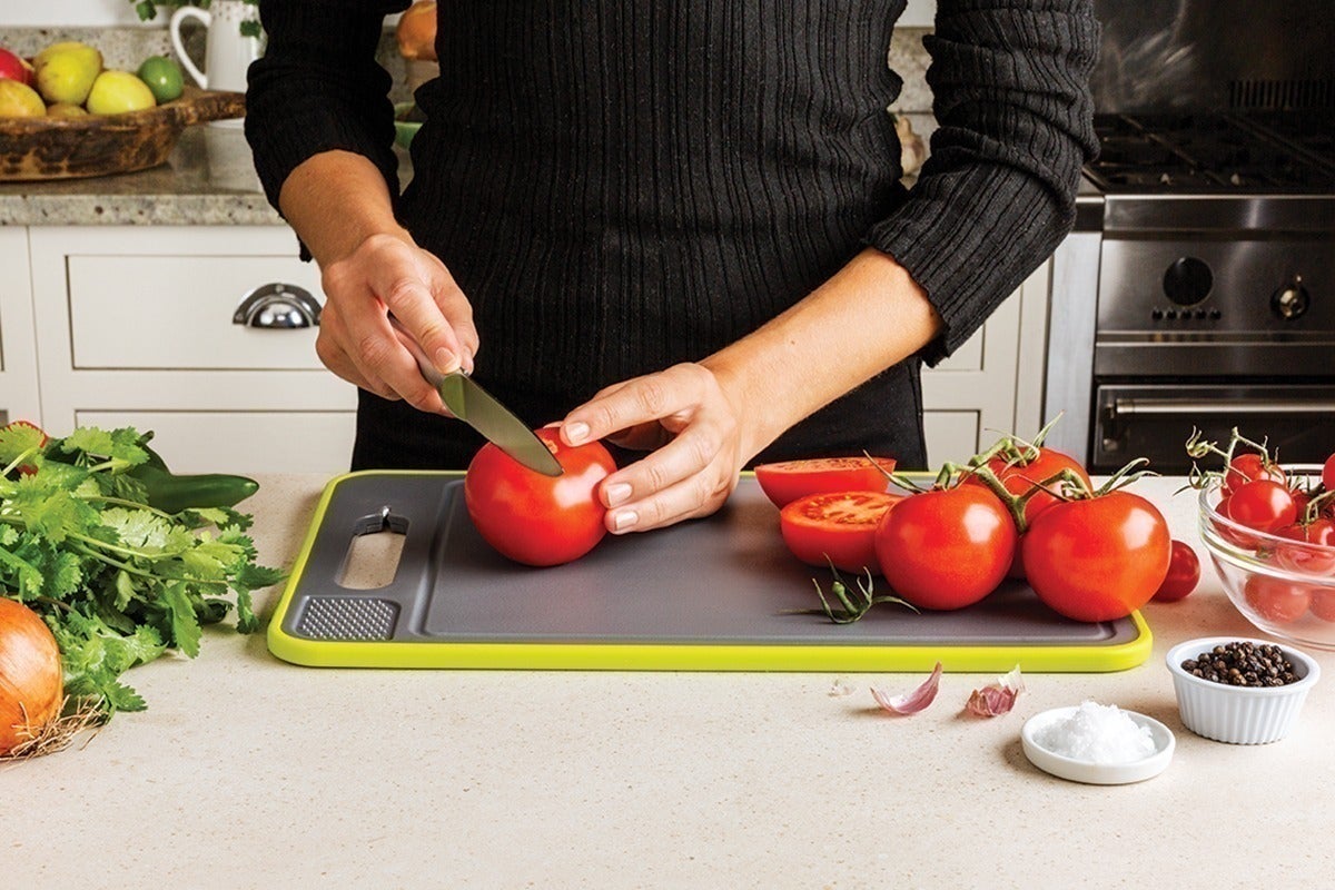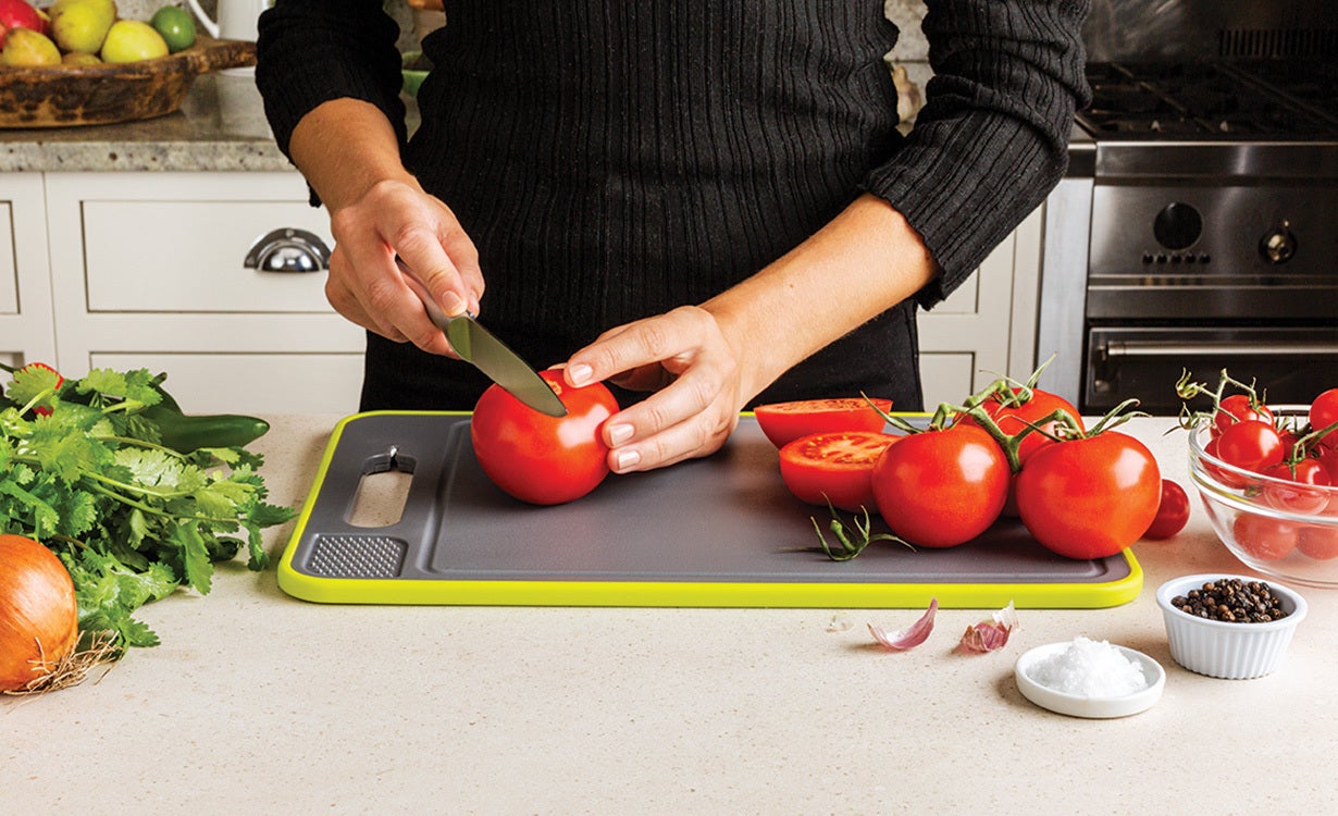 まずは、まな板として!周辺がゴム製の滑り止めで囲まれているから、濡れているキッチンでもずれにくく安定した状態でご使用いただけます。