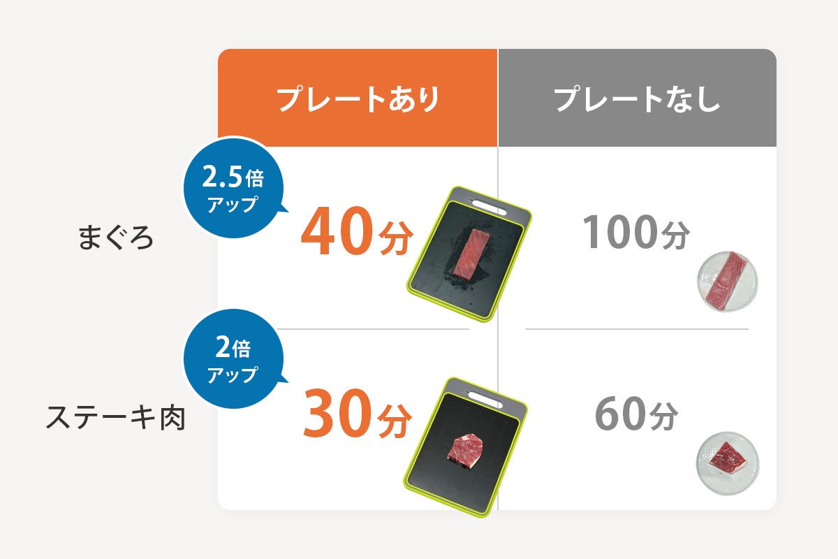 解凍マエストロのプレートを使用すると、解凍時間にこんなに差が!