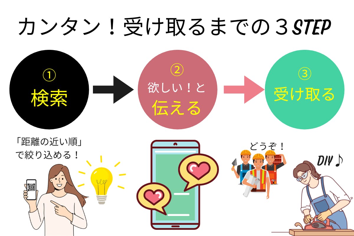 全国各地の工務店が建築現場で出た廃材などをアプリに登録!「距離の近い順」などの絞り込みもでき、簡単に検索!