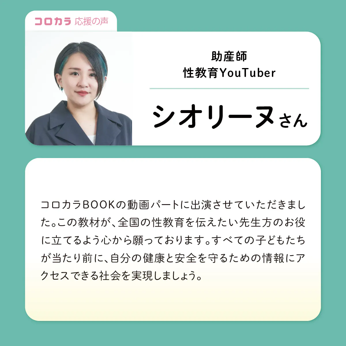 コロカラBOOKの動画パートに出演させていただきました。この教材が、全国の性教育を伝えたい先生方のお役に立てるよう心から願っております。すべての子どもたちが当たり前に、自分の健康と安全を守るための情報にアクセスできる社会を実現しましょう。