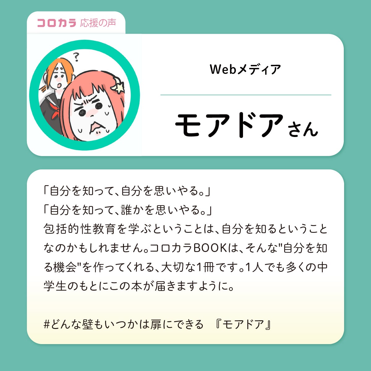 Webメディア・モアドアさんより、応援メッセージをいただきました!