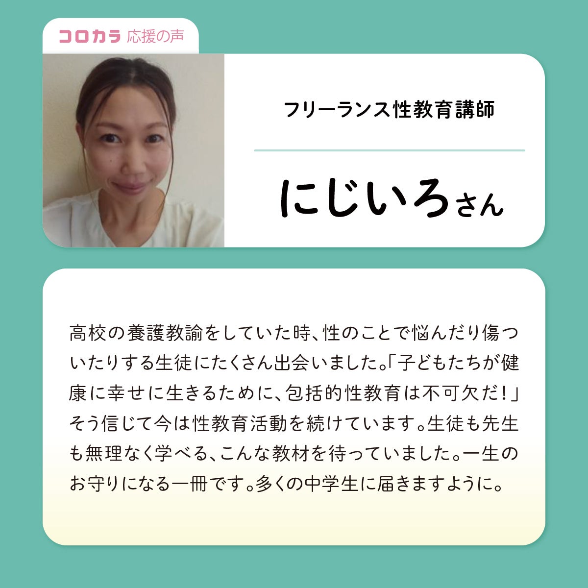 フリーランス性教育講師のにじいろさんより、応援メッセージをいただきました!