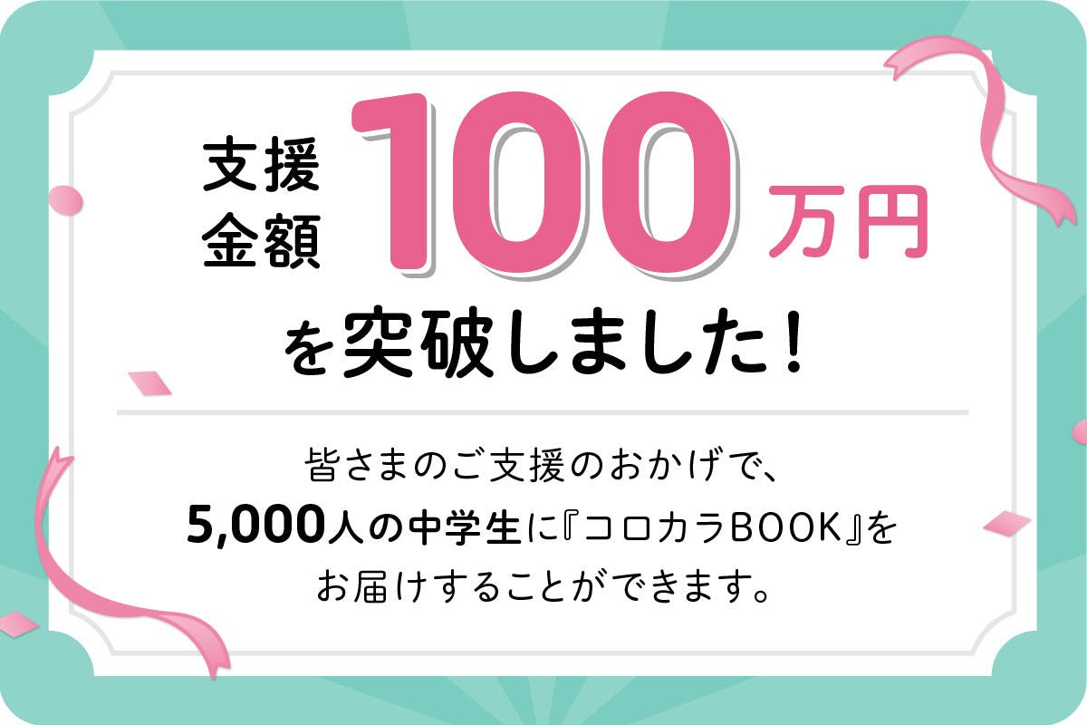 皆さまのご支援のおかげで、5000人の中学生に『コロカラBOOK』をお届けすることができます。