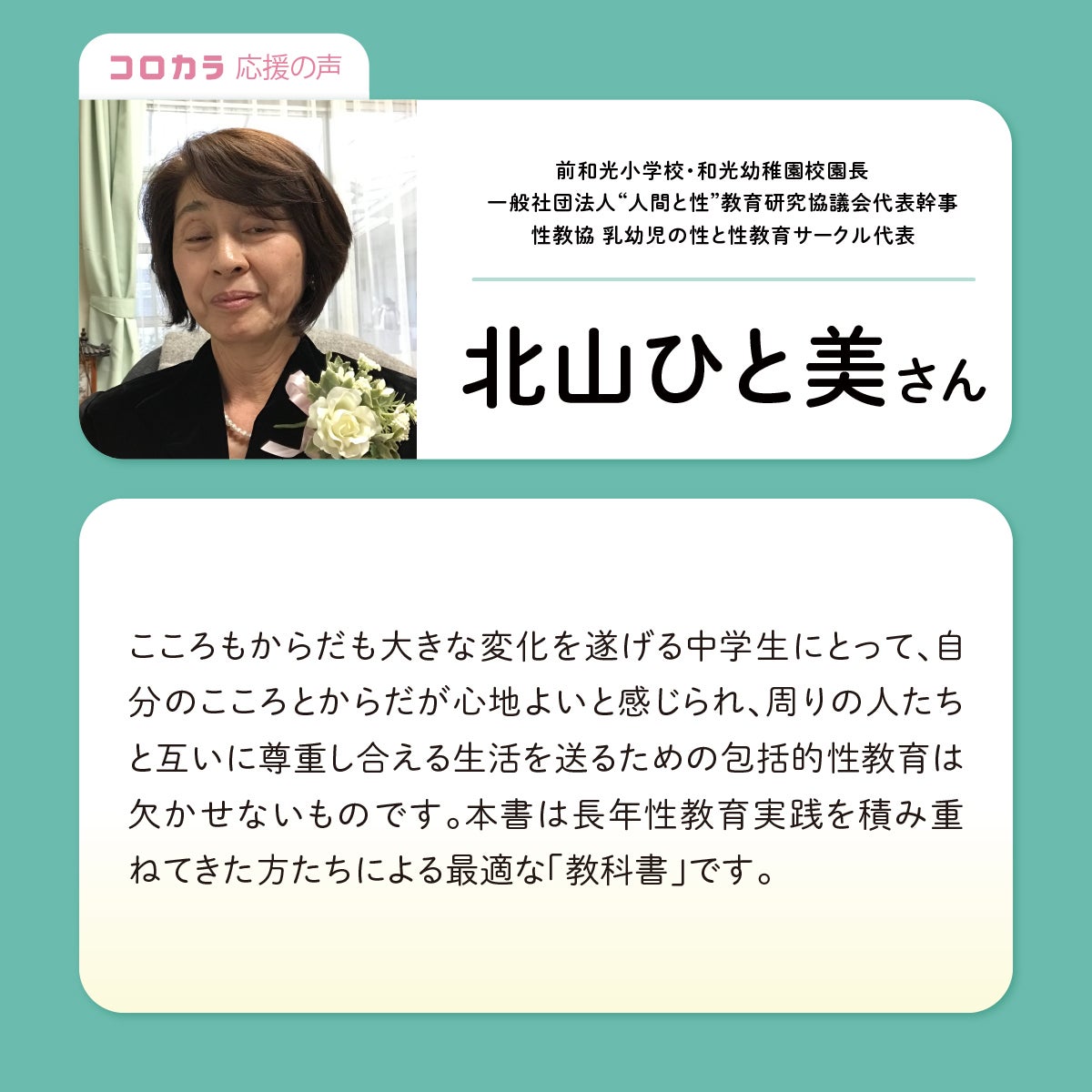 前和光小学校・和光幼稚園校園長、一般社団法人“人間と性”教育研究協議会(性教協)代表幹事、性教協 乳幼児の性と性教育サークル代表の北山ひと美さんより、応援メッセージをいただきました!