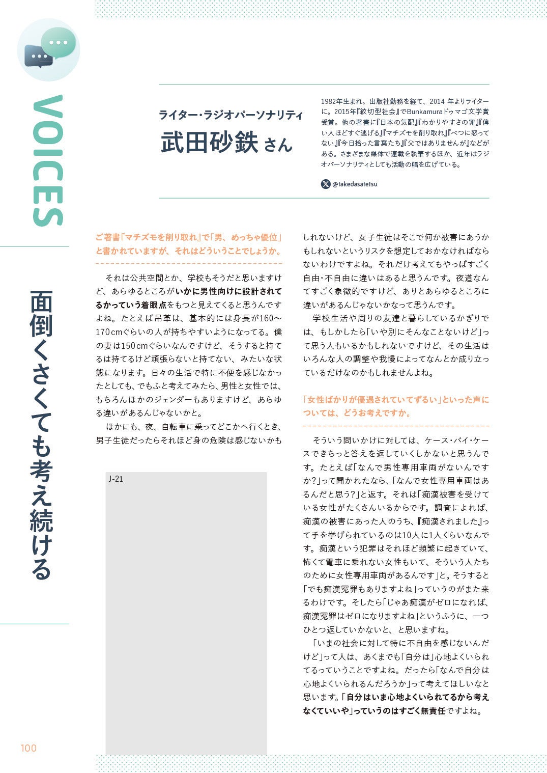 『コロカラBOOK』のVOICESでは、その分野で活躍されている方々へのインタビュー&対談記事を読むことができます。今日は、ライターでラジオパーソナリティの武田砂鉄さんへのインタビューの一部を公開します!