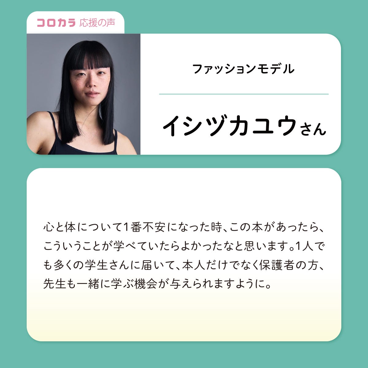 ファッションモデルのイシヅカユウさんより、応援メッセージをいただきました!