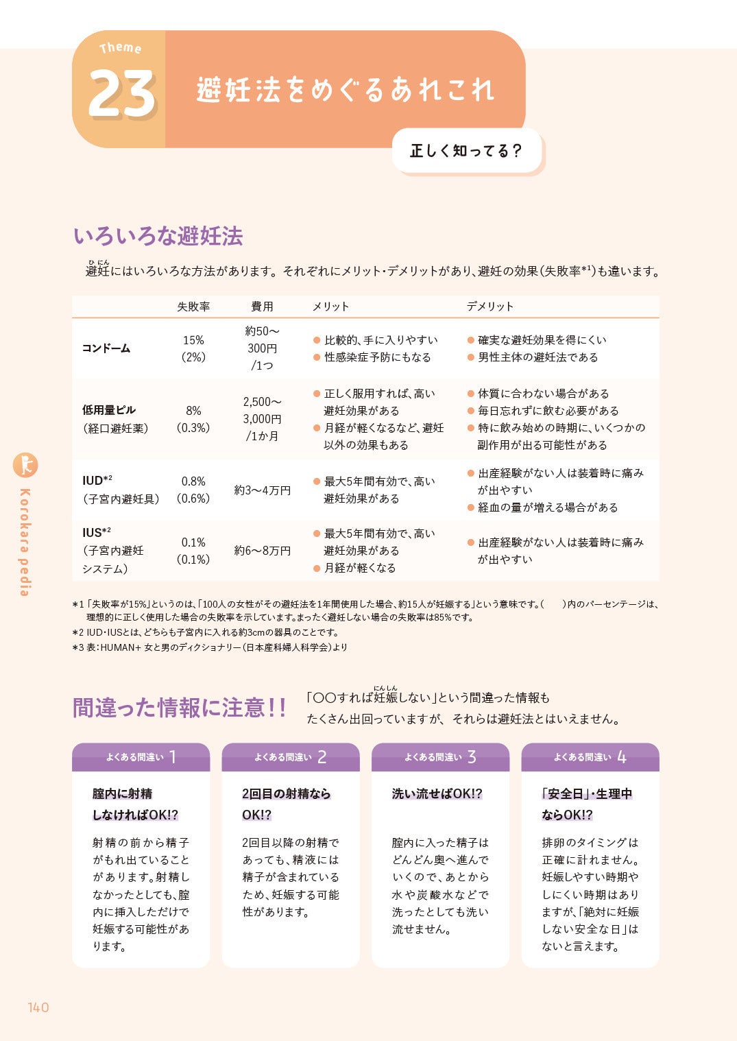 このページでは、さまざまな避妊法を効果や費用、それぞれのメリット・デメリットとともに紹介しています。どんな選択肢があり、それぞれにどのような特徴があるのかを知っておくことは、自分の人生や性について主体的に選択するためにとても大切なことだと思います。また、巷に出回る「〇〇すれば妊娠しない」という間違った情報も取り上げて解説しました!