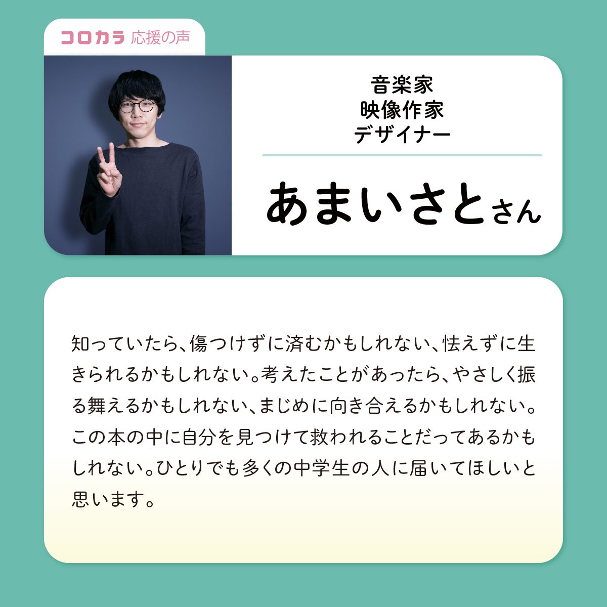 知っていたら、傷つけずに済むかもしれない、怯えずに生きられるかもしれない。考えたことがあったら、やさしく振る舞えるかもしれない、まじめに向き合えるかもしれない。この本の中に自分を見つけて救われることだってあるかもしれない。ひとりでも多くの中学生の人に届いてほしいと思います。