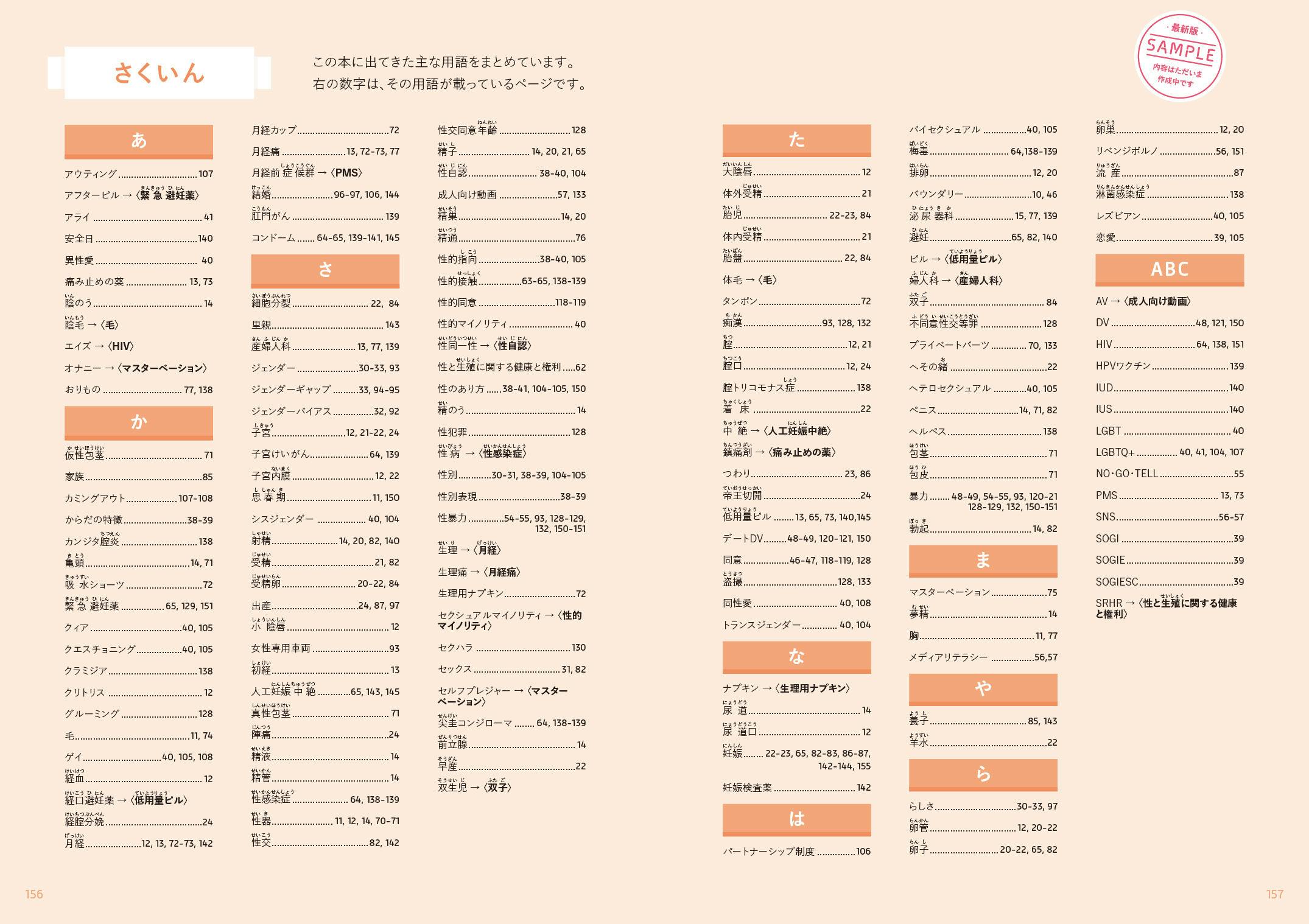 巻末には、本の中にでてきた用語のさくいんページも設けました。『コロカラBOOK』は学校の授業だけでなく、自分で調べたいことや気になることがあるときに使ってもらうことも想定してつくられています。学校の授業で使わないとき、あるいは中学校を卒業したあとも、何か知りたいことや困ったこと、不安なことがあったとき、この本を手にとってもらえたらうれしいです!!