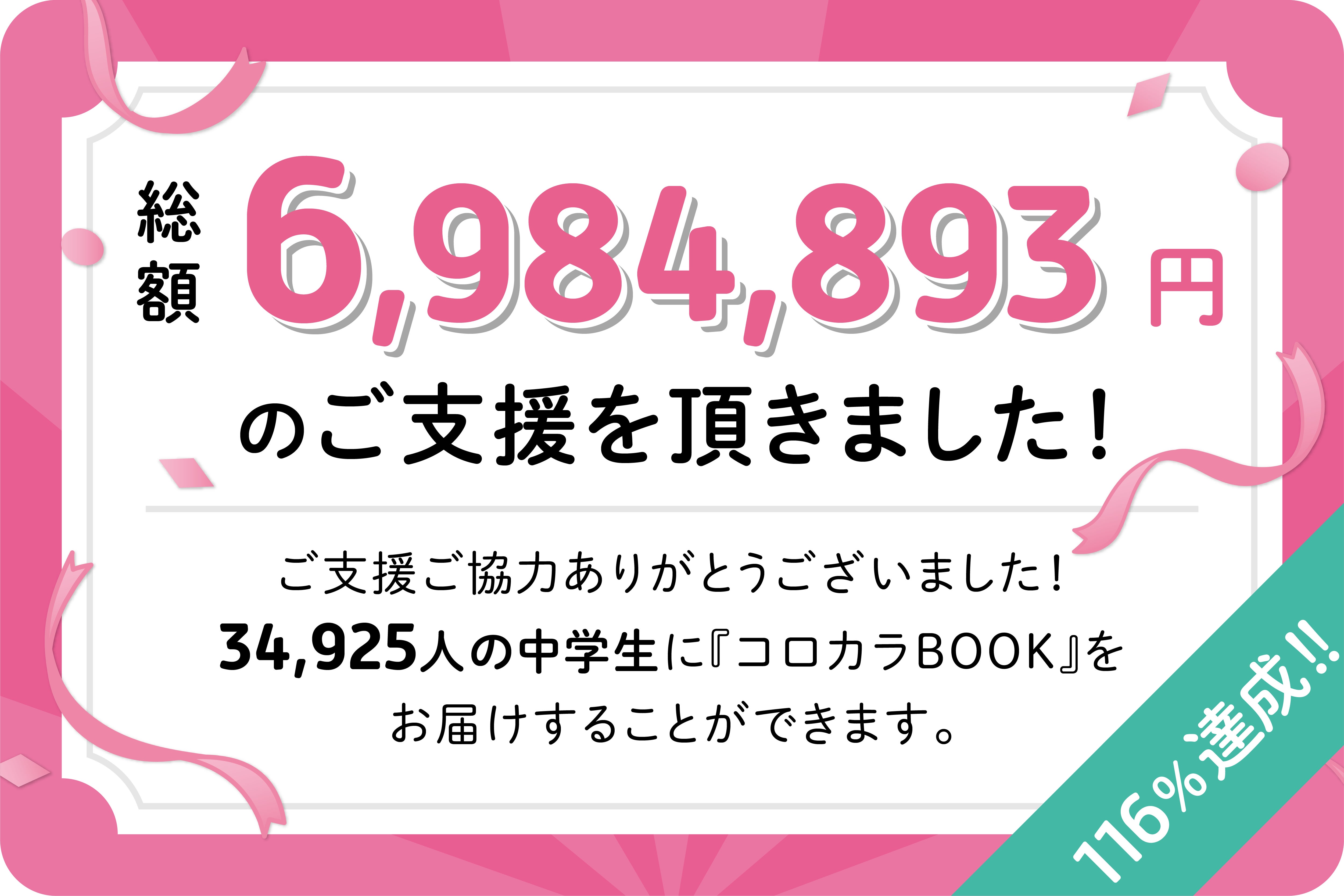 おかげさまで34,925人の中学生に『コロカラBOOK』を届けることができます。