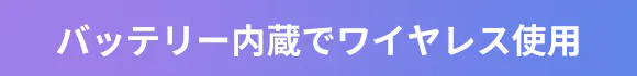 バッテリー内蔵なのでコードレスでお使いいただけます。面倒なケーブルの長さ調整や絡まりの心配はありません。