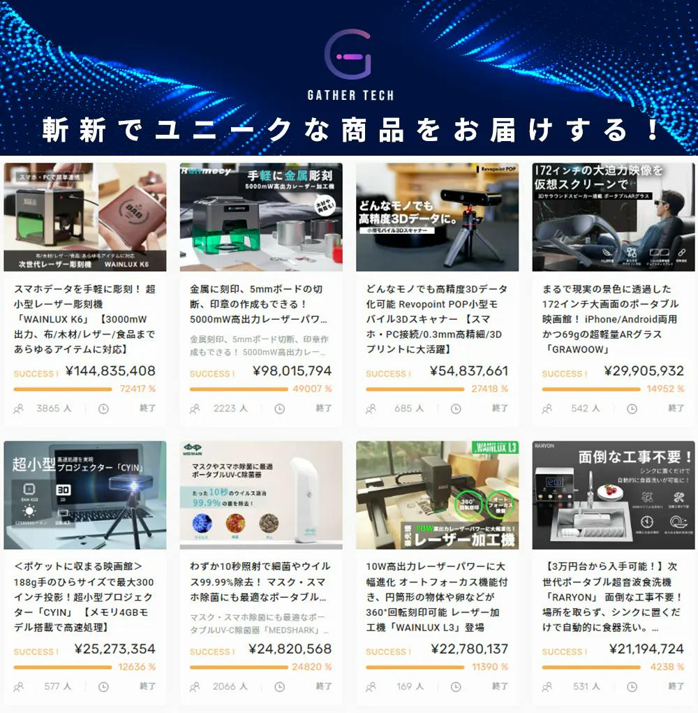 ※リターン品の配送が完了するまで、Gather_Tech (株式会社ギャザテック)はChengdu Chendian Intelligent Technology Co., Ltd.の日本における独占販売権を有する正規代理店です。