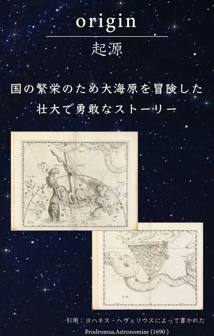 様々な困難を乗り越え危険な航海を無事に成功させた後、「アルゴ船」は神々の祝福により天に献上され、夜空で輝く最も大きな星座「アルゴ座」になったと言われています。