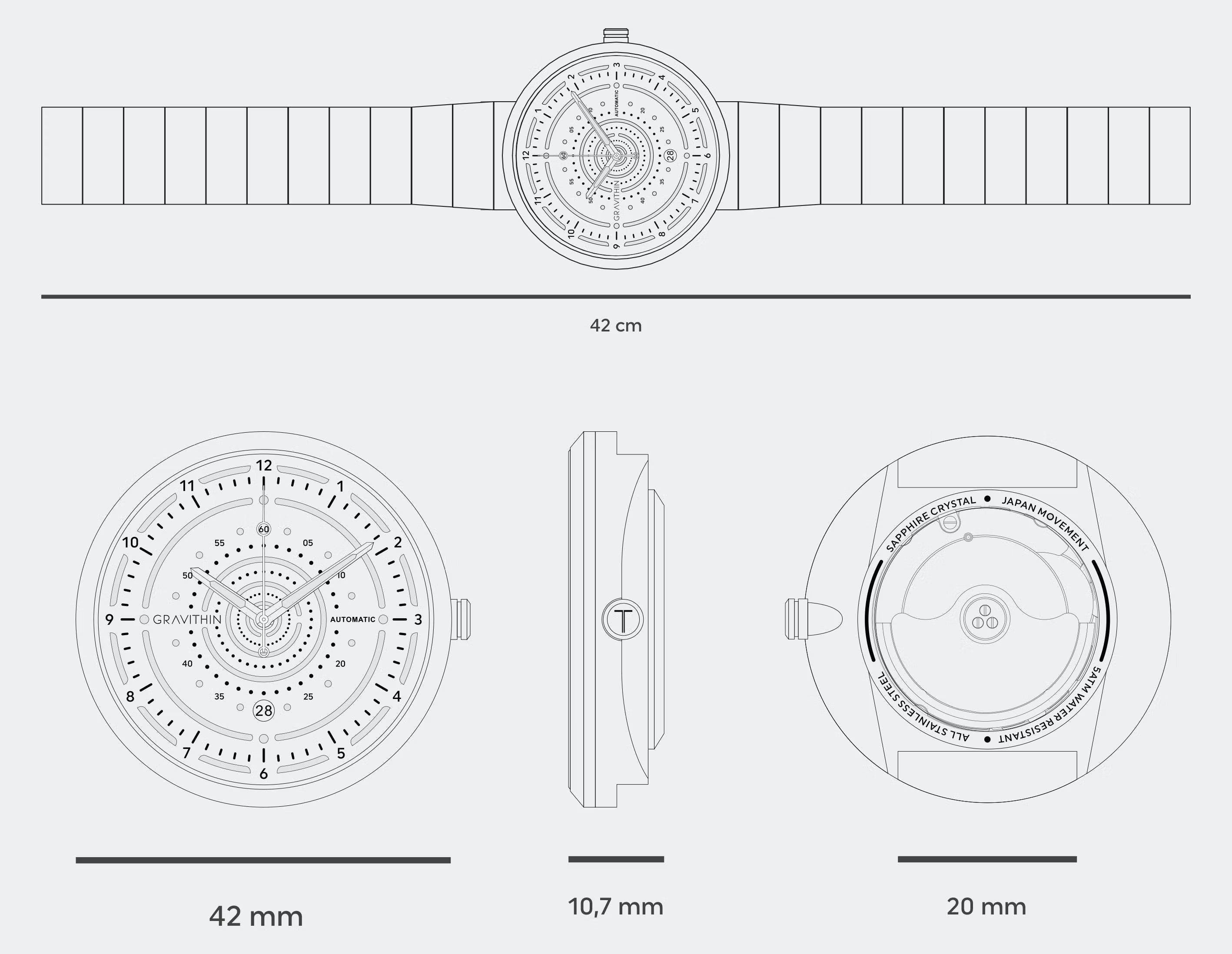 ArgoMaticは直径 42 mmの機械式時計なのに10.7 mm と薄く非常に軽いです。時計の重みで肩や首が疲れる...。もうこんなツライ経験も必要ありません。