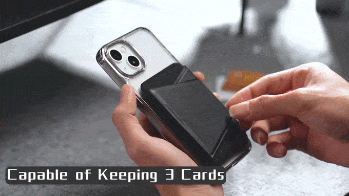 ③最大3枚のカードを収納できます。閉じる際には磁気でしっかりと固定されるため、紛失の心配もありません。
