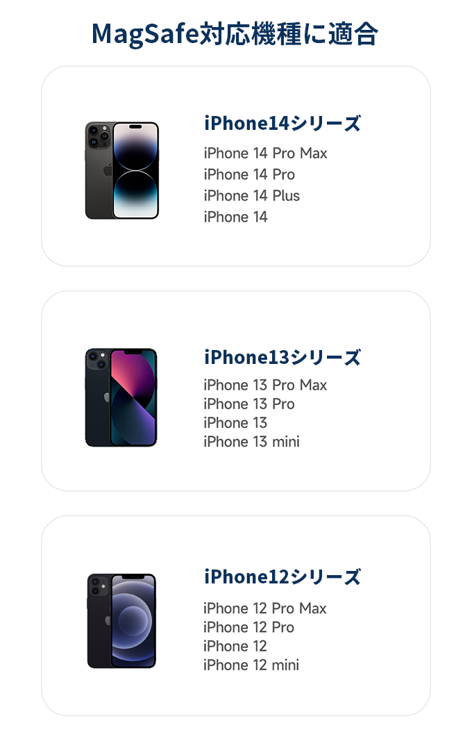 ※上記以外の機種をお使いの場合、MagSafeリングと併用すればご使用可能となります。