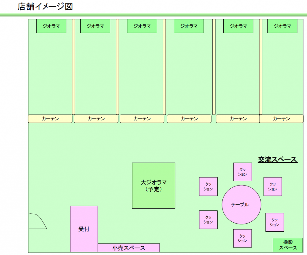 ジオラマ作製費、撮影機材、撮影ブースの店舗作製費に充てます。