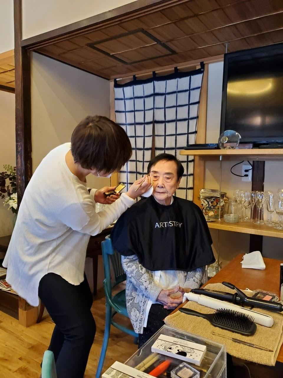 久しぶりのお化粧に緊張のご様子のおばあちゃんと、見違えたなぁと奥様の肩にそっと手をまわされるおじいちゃんに、長年の愛情を感じました。