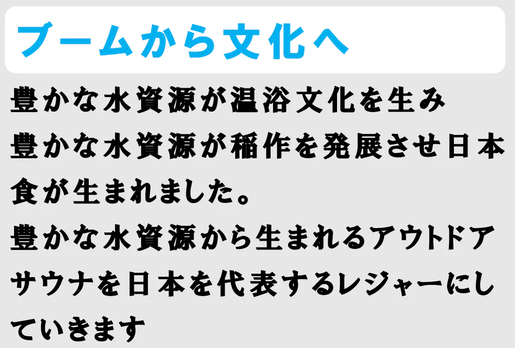自然豊かな日本に生まれ、テントサウナで川や森と一つになり、生まれ変わるような体験をしてほしい。この思いがあるので屋内でのサウナではなくアウトドアサウナの事業を始めました。