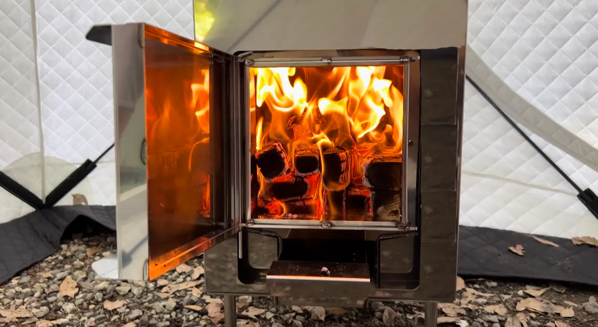 スチーム式薪ストーブを使用することで実現した軽量化テントサウナ