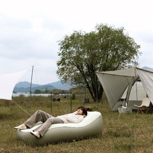 HOTO AIR SOFAは、まるで寝るような心地良さを提供してくれます。キャンプ場でゆったりと座りながら、自然に囲まれて心地よい風を感じることができます。ソファーの柔らかさと座り心地はまるでベッドのようで、日中のアクティビティや夜の星空観察の合間に、疲れた体を癒す場所としても最適です。