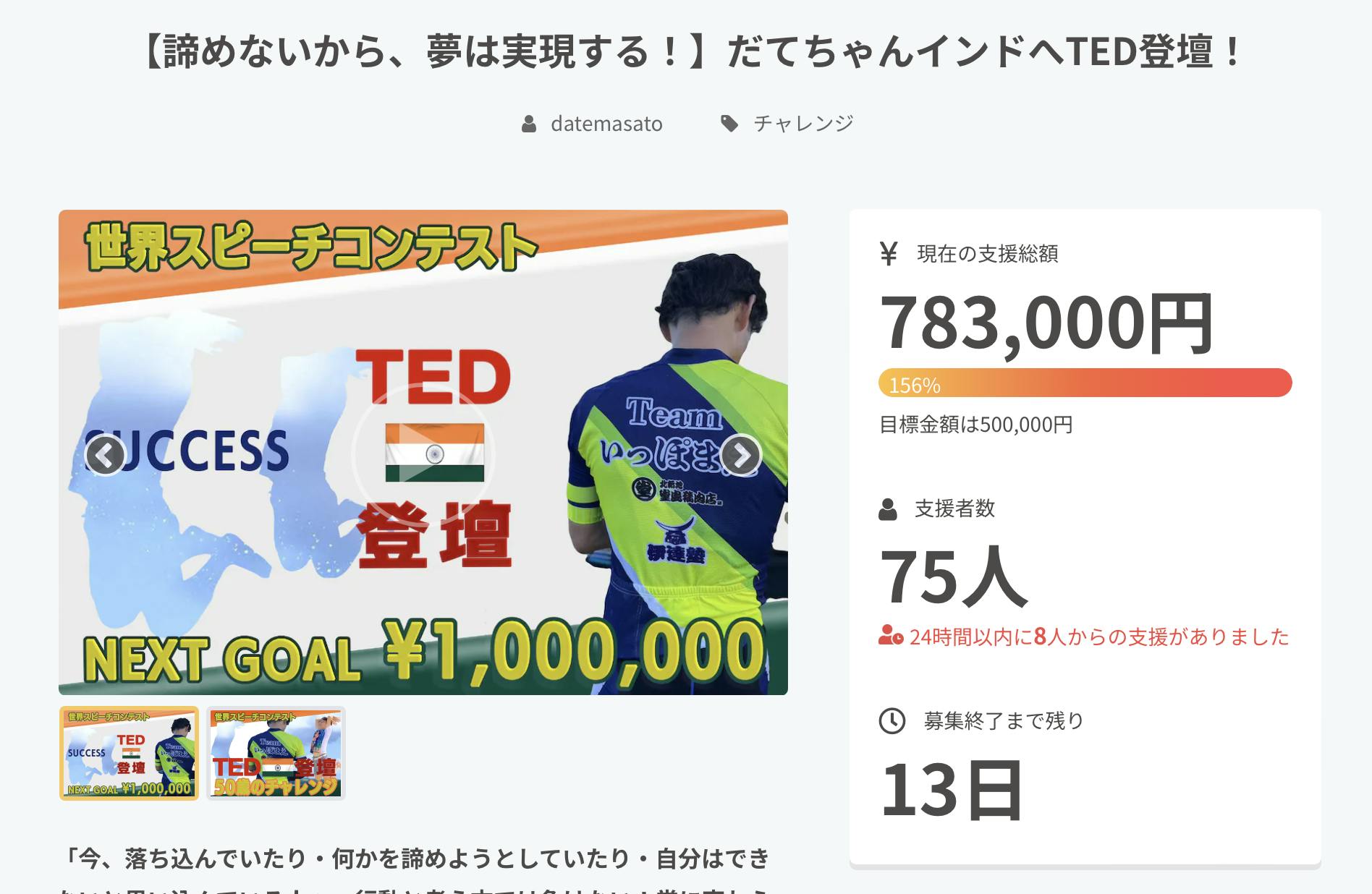 一緒にTEDを登壇する気持ちでご支援いただければと思います。