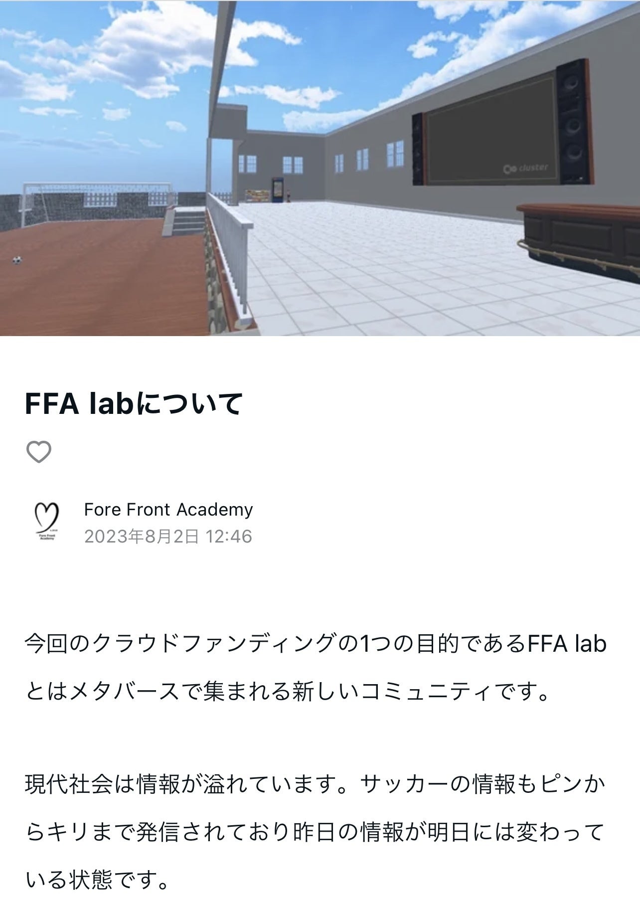 今回のクラウドファンディングの目的の1つである「FFAlab」の設立。