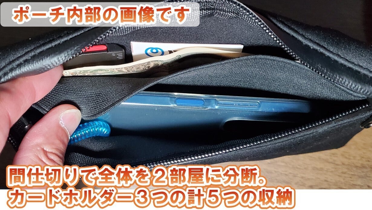 ファスナー・落下防止リング・中身を落とさない堅牢なポーチです。