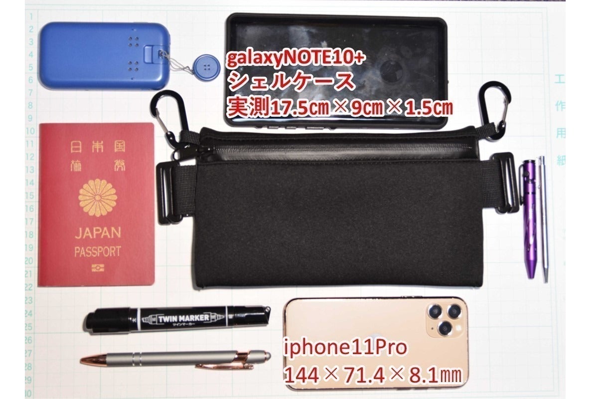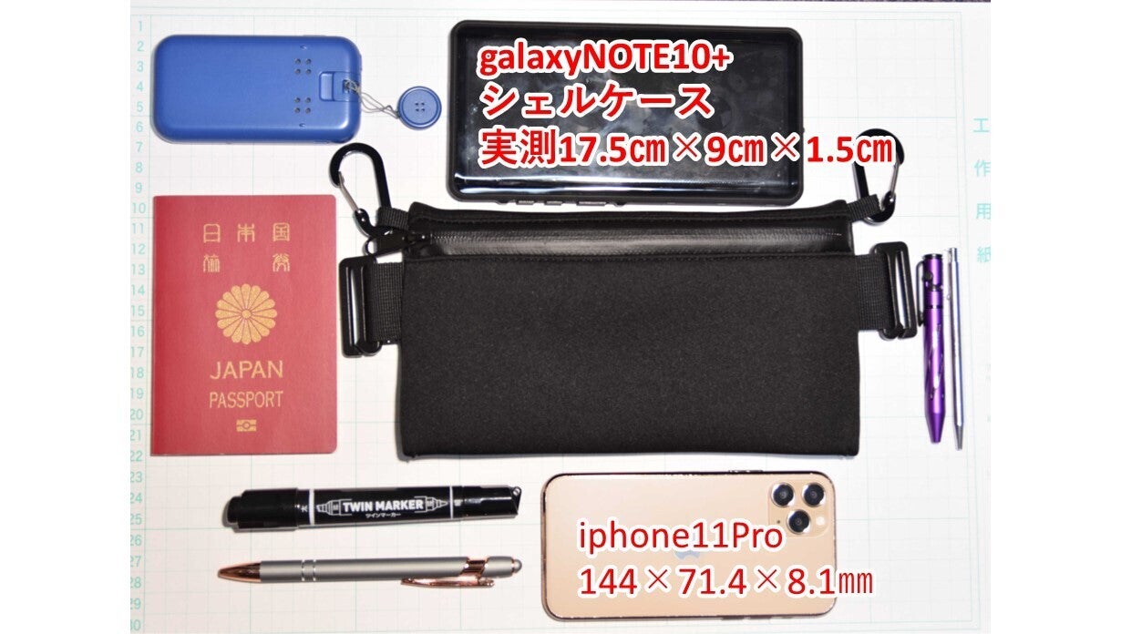 「大型スマホ+ケース」 での使用を想定したサイズ。