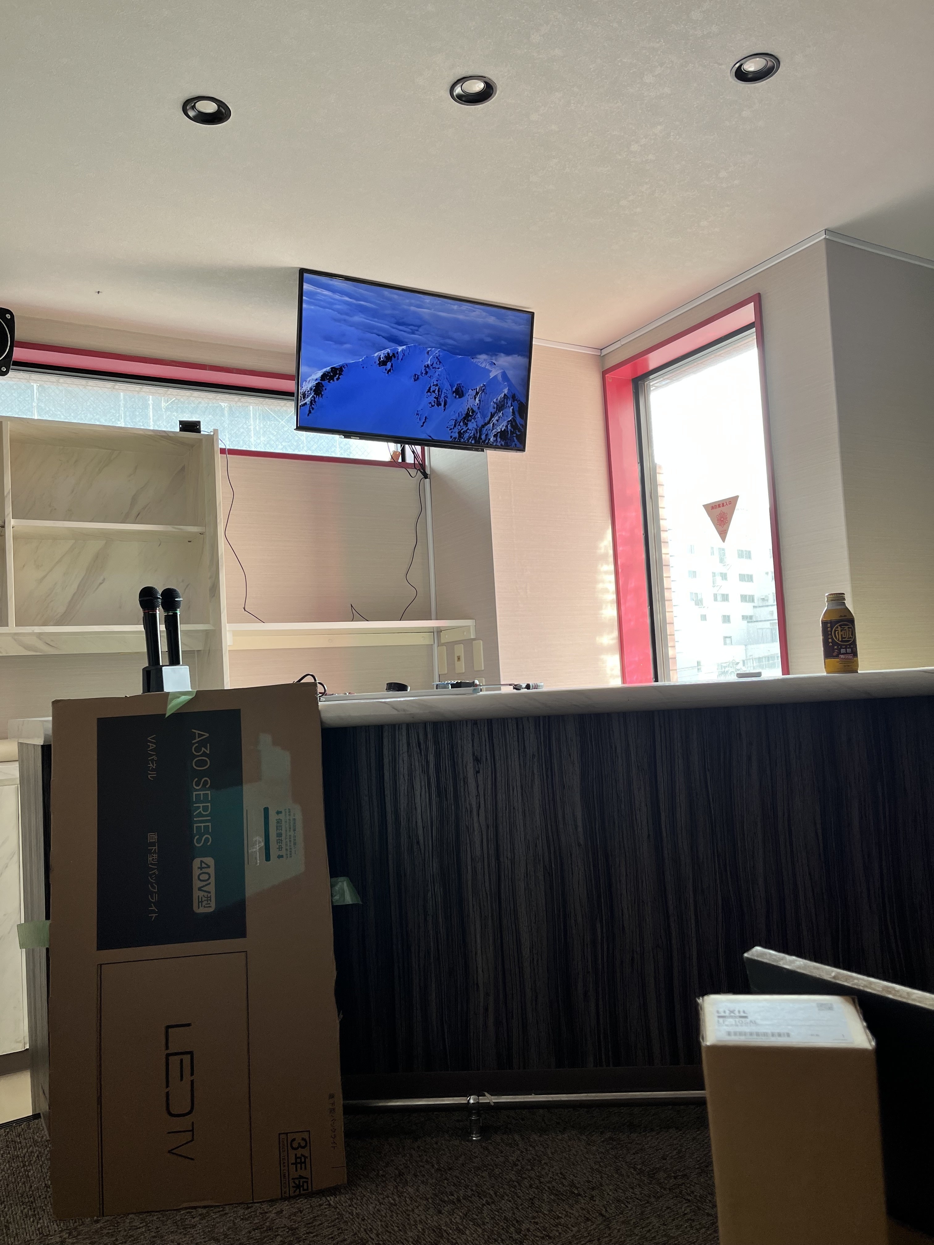今日は、カラオケ設置