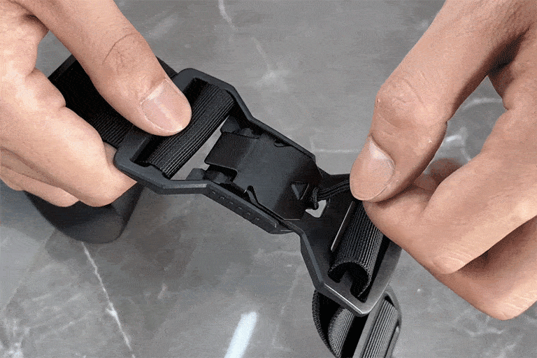 片手で簡単に装着できるように、マグネット搭載のバックルを採用しました。カチッと装着できるので、快適な使い心地を体感することができます。