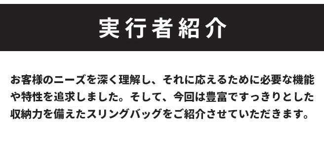 ●事業内容:主にボディバッグ、スリングバッグなど男性用バッグの研究開発、及び製造。