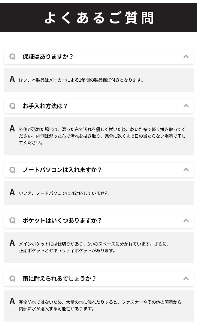 耐久性に優れた高品質なオックスフォード生地を使用しており、急な雨の日でも大切な書類や電子機器をしっかりと保護することができます。