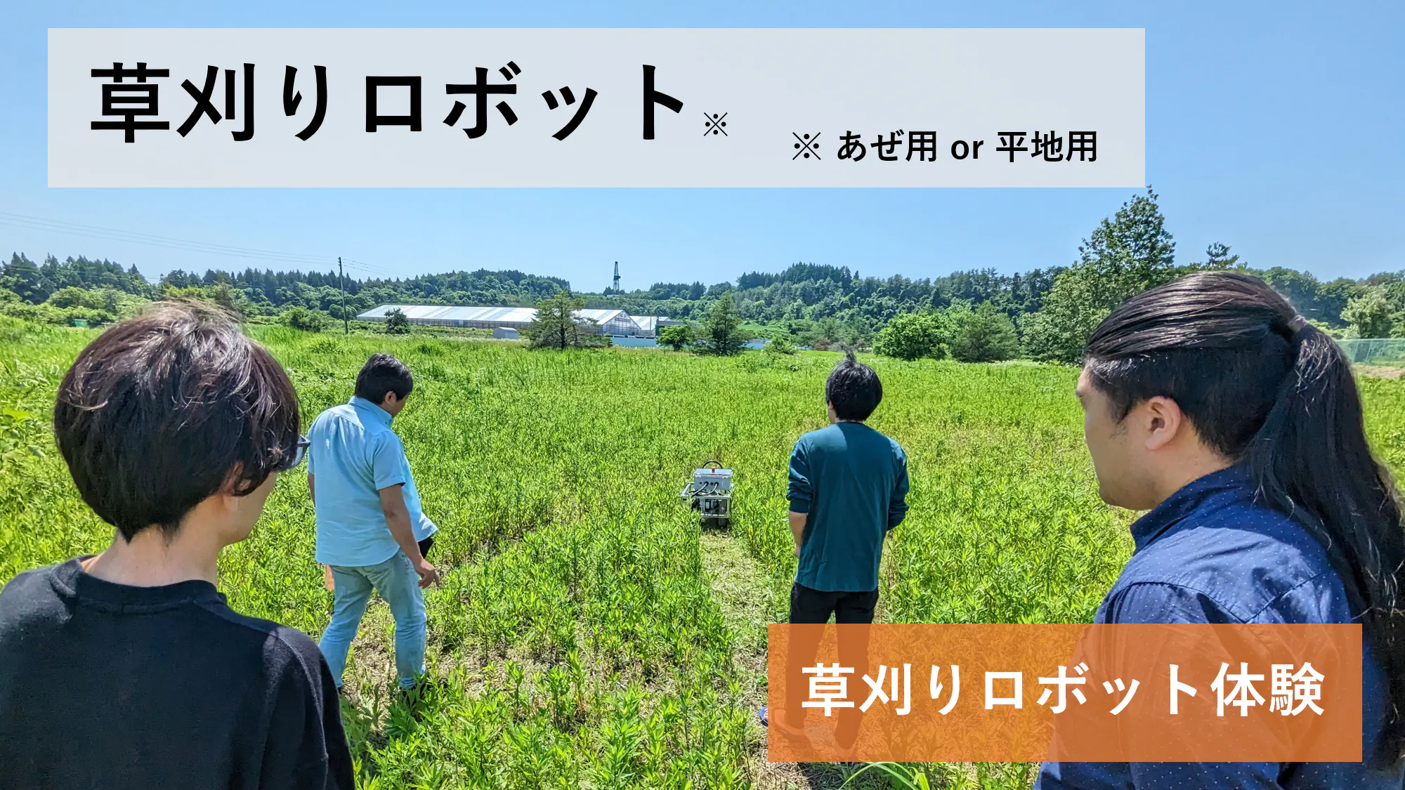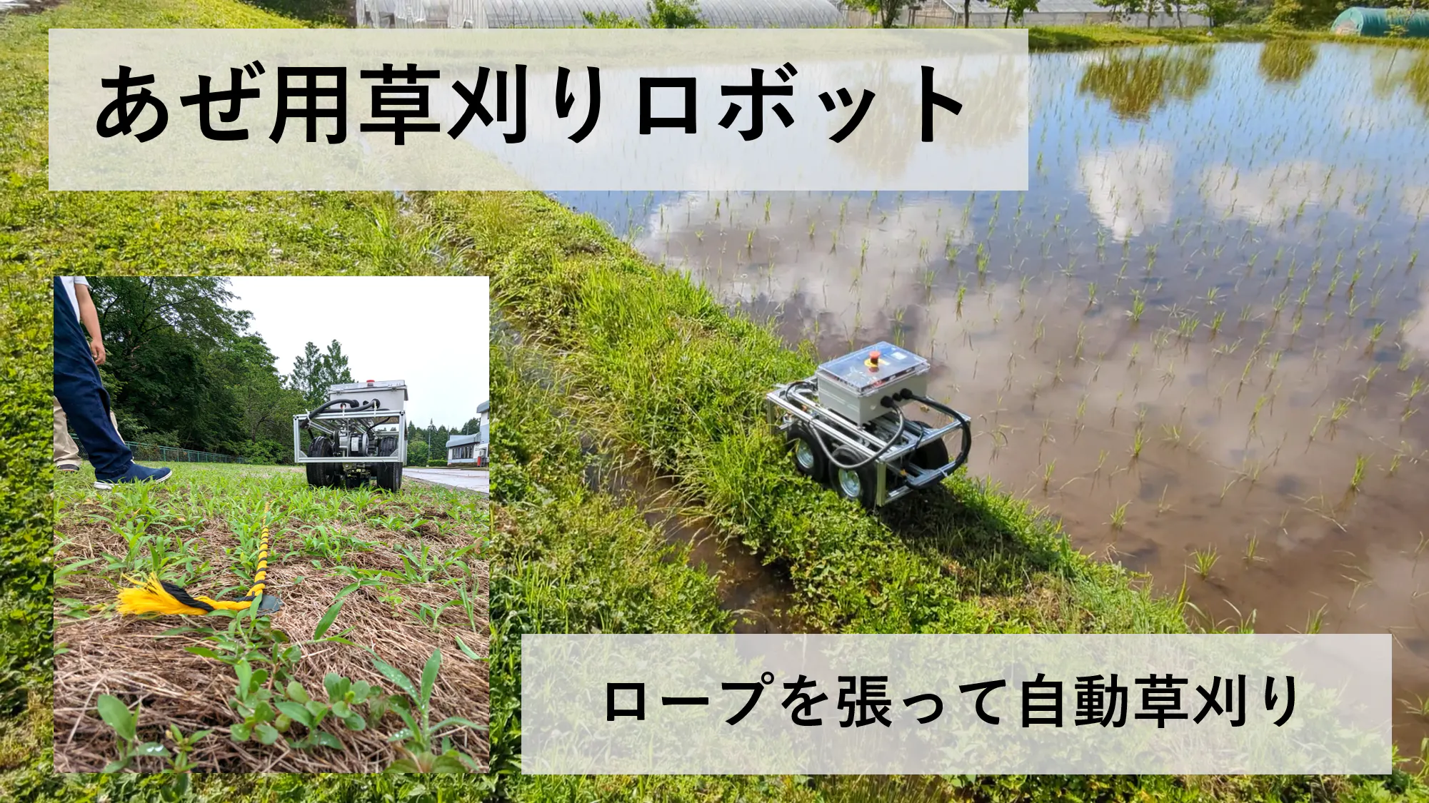 稲作用のあぜ草刈り、平地の草刈り等、ロボットとAIを活用して様々な草刈りに挑戦しています。