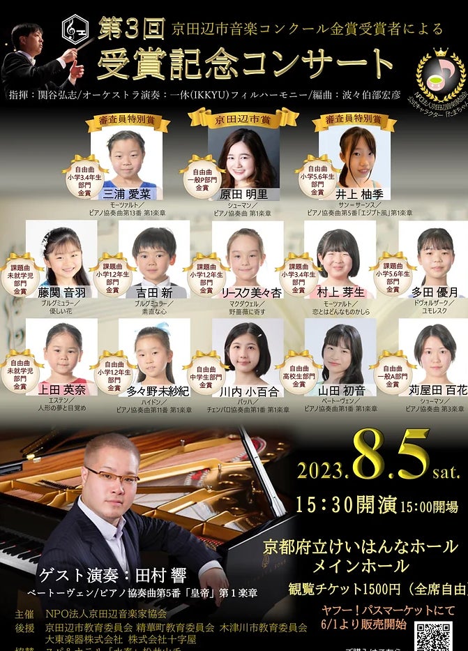 2023年 6月1日 「第3回京田辺市音楽コンクール受賞記念コンサート」チケット発売開始