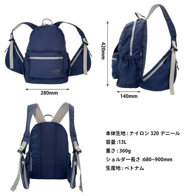 軽くて柔らかいナイロン生地を使用し、容量13リットルで、重量はなんと360グラム