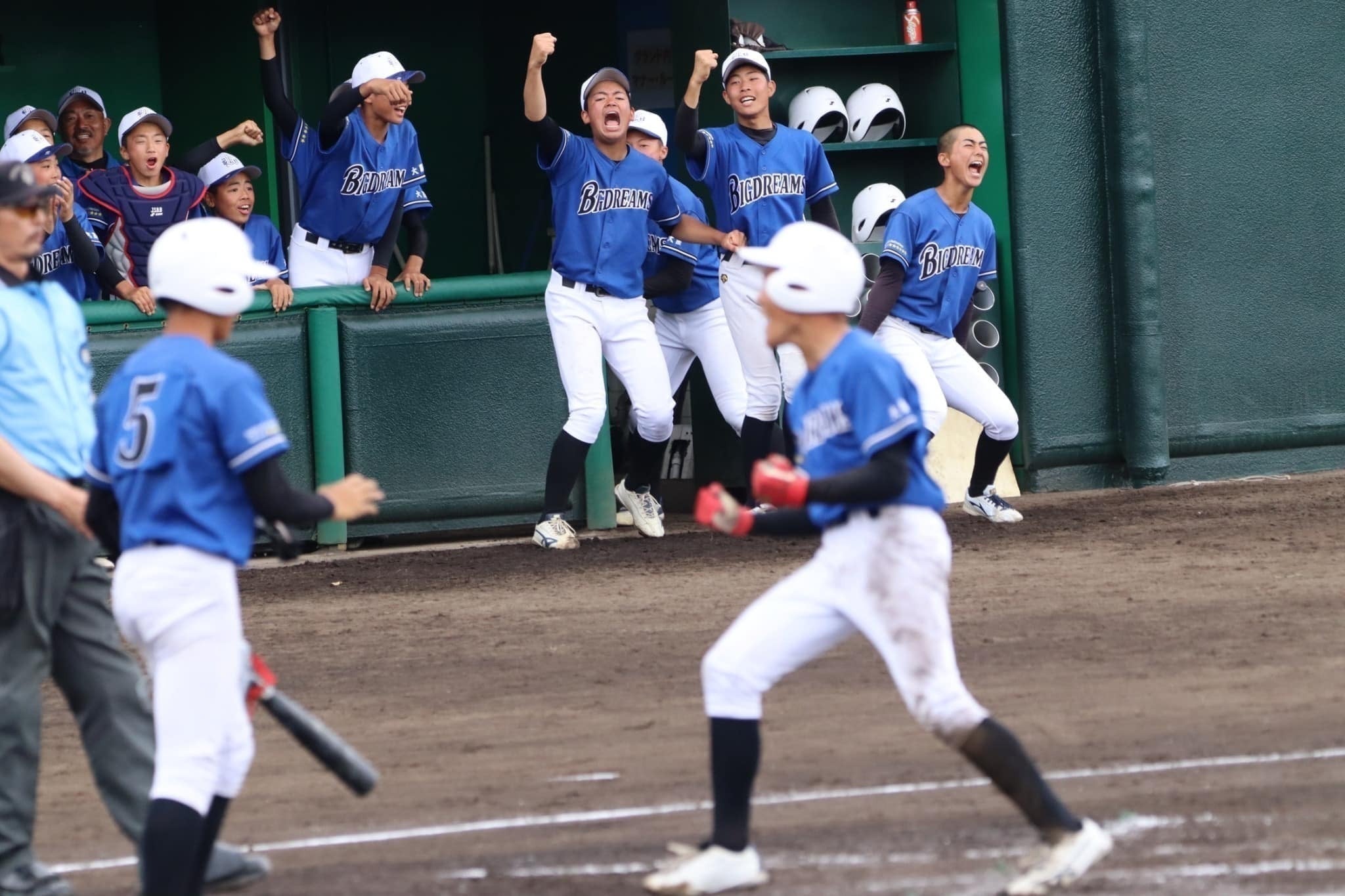 “勝ってこそ恩返し”をチームの言葉として練習に取り組み、選手たちは技術面はもちろんですが、精神面でも大きく成長しました。その結果、大阪府大会を優勝で勝ち上がり、6月4日に行われました近畿ブロック予選大会では、和歌山県代表を5対1で見事に破り12年ぶり2回目の近畿代表2枠のうちの1枠を勝ち取りました。8月14日から行われる横浜スタジアムでの『第40回全日本少年軟式野球大会ENEOSトーナメント』は各地区の予選を勝ち上がってきた18チームが出場します。