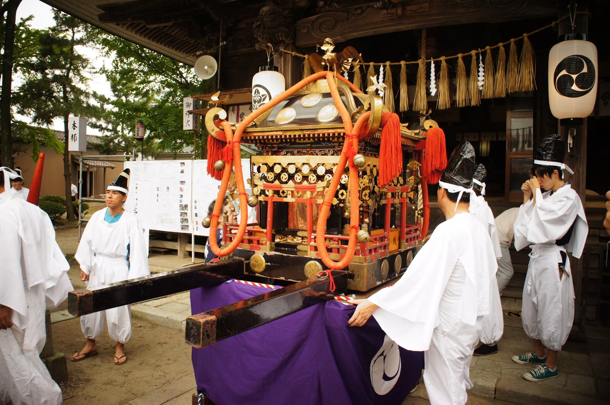 以前は祭りに白木作りの真新しい神輿を作り、一晩で壊してしまうという習慣でしたが、造営費が莫大になるため、江戸末期に当時の割元が、現在の神輿を京都から買い求めました。