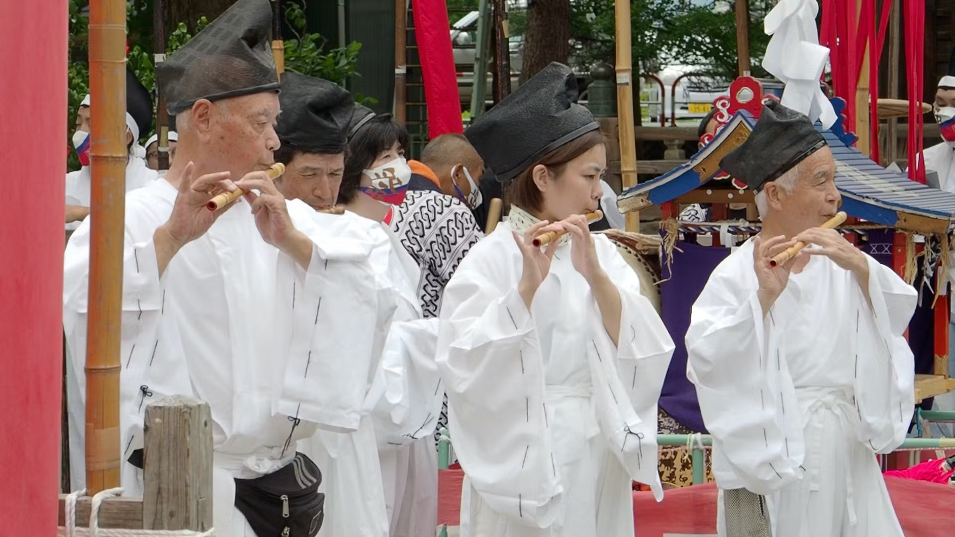 拍子方の笛と太鼓の音は、花火だけでなく神輿が神社を渡り歩く神輿渡御でも演奏され、祭りの雰囲気を一層盛り上げてくれています。
