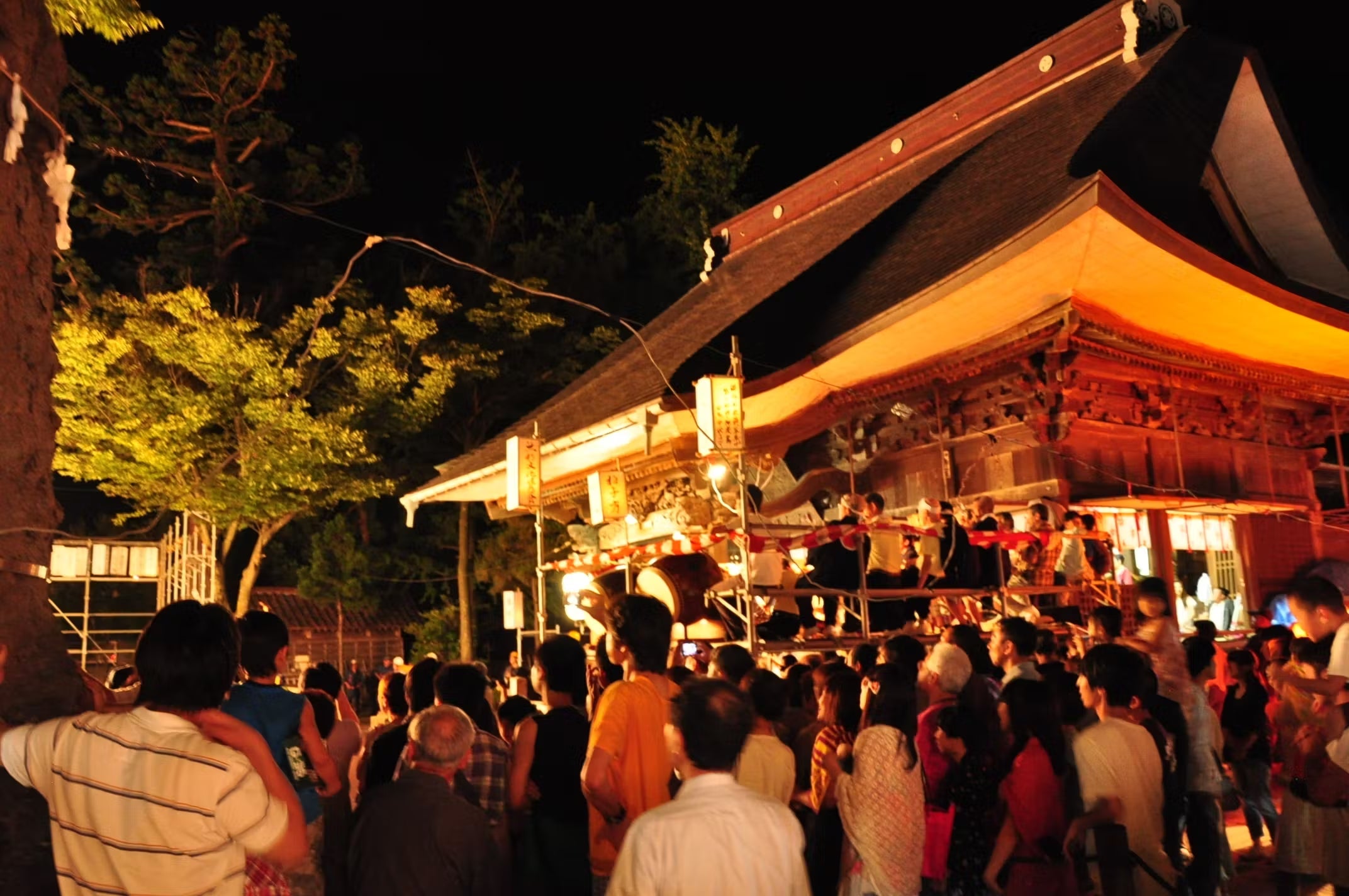 目の前で吹き上がる火の粉が夜空に舞い上がると、見物客は祭りの最高潮とともに夏の終わりを感じる風物詩です。