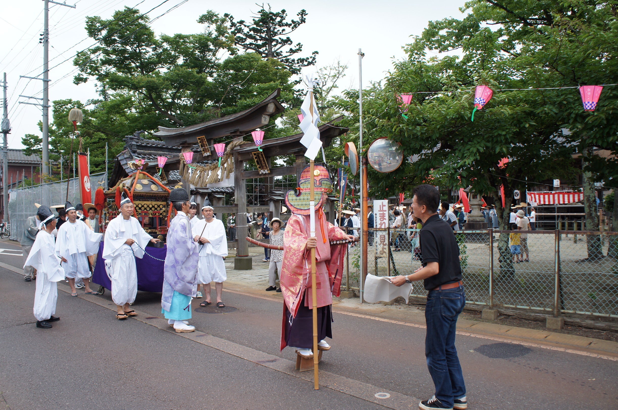 神輿が神社を渡り歩く際、その先頭に立って露払い役を務めています。演武で行われる武術により、道中の邪気を払う役目があります。