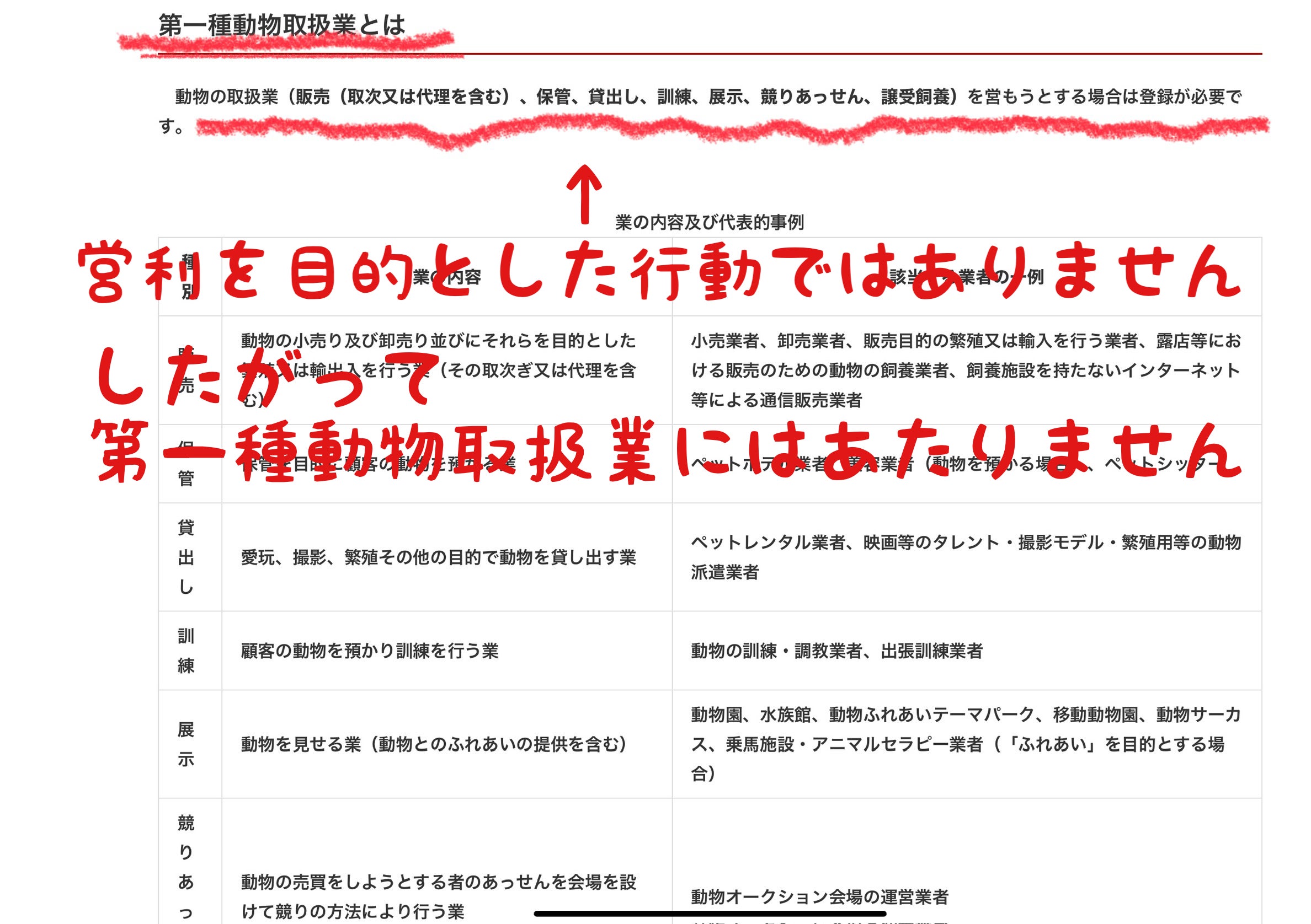 したがって「動物取扱法」には抵触せず法を遵守しています。
