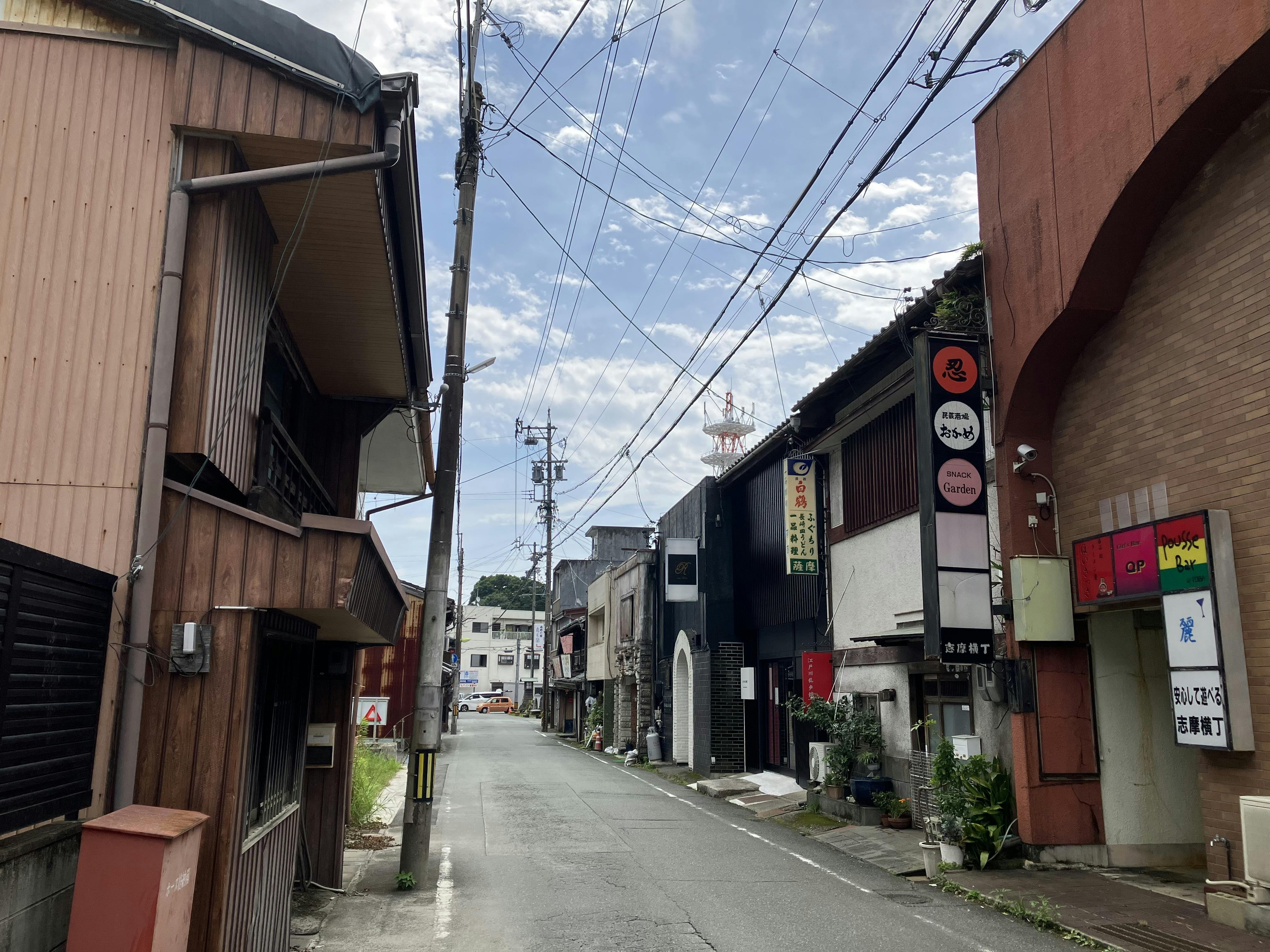 この家は、かつて道が人であふれる頃から旅館を営んできた先祖代々の土地になります。祖父母が体調を崩してから父が取り壊したため、敷地いっぱいに建っていた大きな黒い木造の旅館は現存せず、現在敷地内には小さな家が2棟と7台分程度の駐車場があります。現在は私個人の所有です。