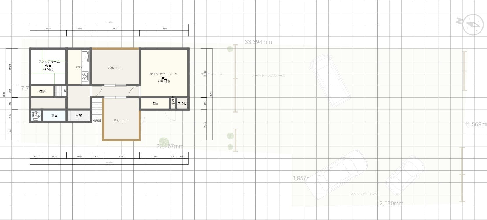 そのため敷地90坪と2つの建物すべてを使った「オートキャンプができる映画館」に修正しました。